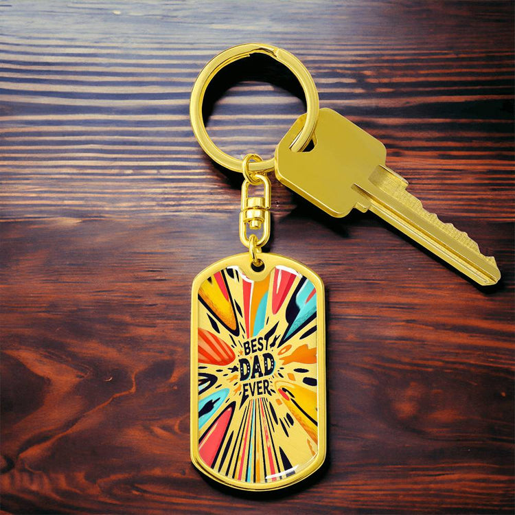 Llavero con placa de identificación con diseño gráfico de rayos coloridos "El mejor papá del mundo"