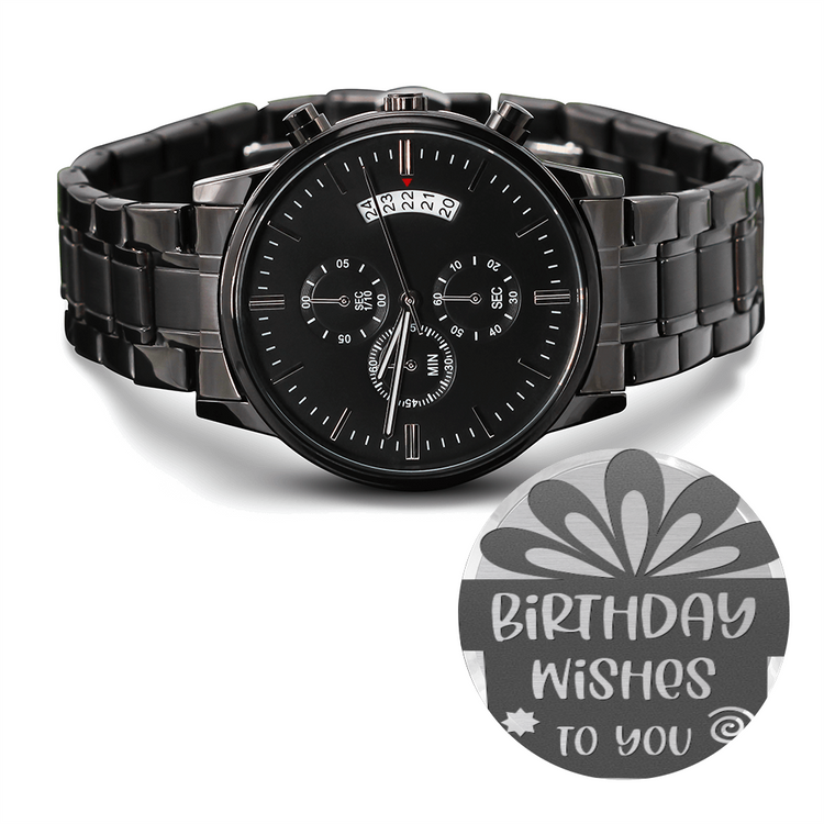 Birthday Wishes to You Engraved Black Chronograph Watch