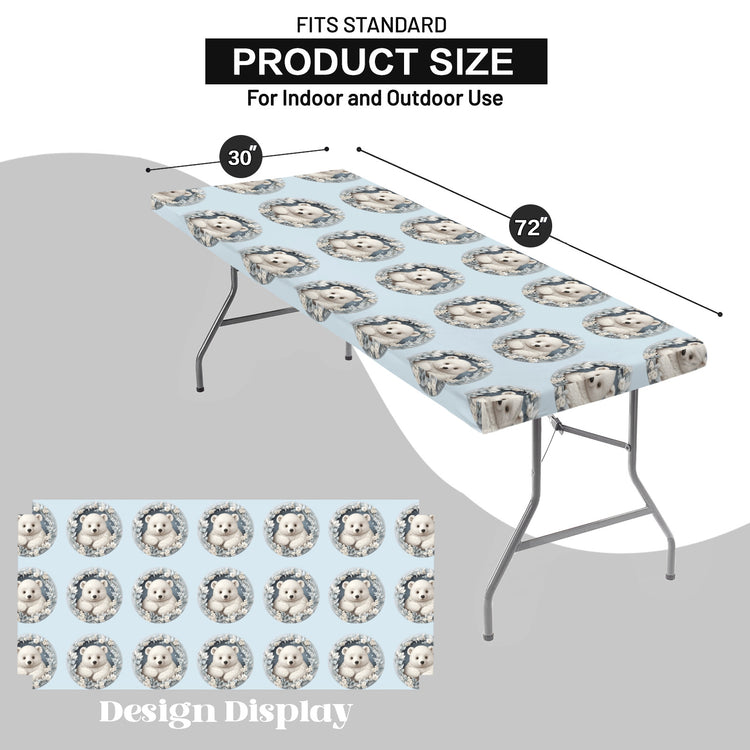 Bring warmth and whimsy to your table with this adorable baby polar bear tablecloth, perfectly sized for 72x30 inch tables. Made in the USA with quality craftsmanship, this custom elastic fitted design features an endearing polar bear design that delights both children and adults. The secure elastic edges keep the tablecloth snugly in place, protecting your table while maintaining a polished appearance through every meal and celebration. Ideal for family gatherings, themed parties, or simply adding a touch of playful charm to your dining room. Create memorable moments around a table that sparks conversation and smiles.