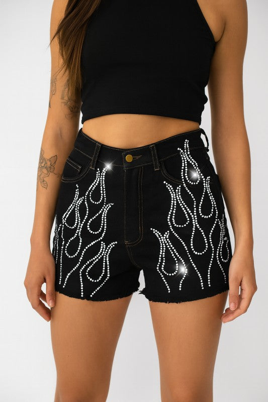 FLAME RHINESTONE DENIM SHORT