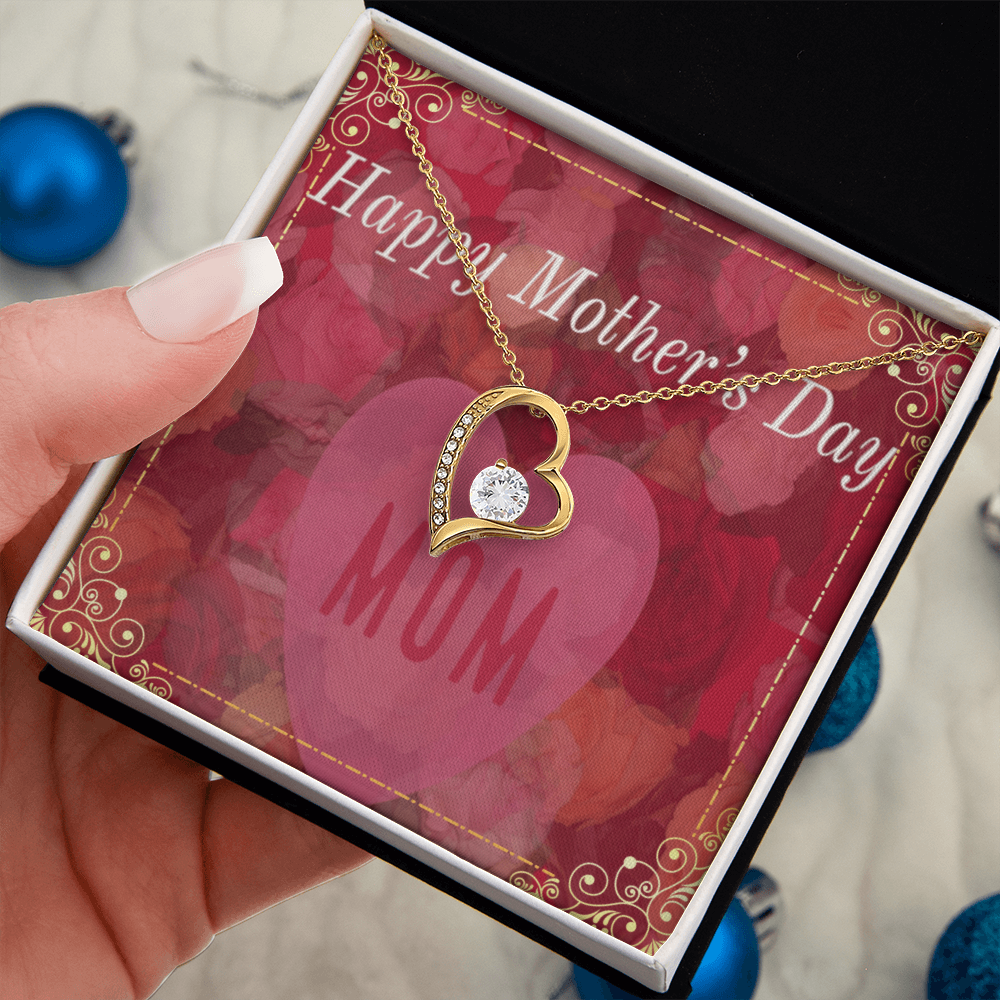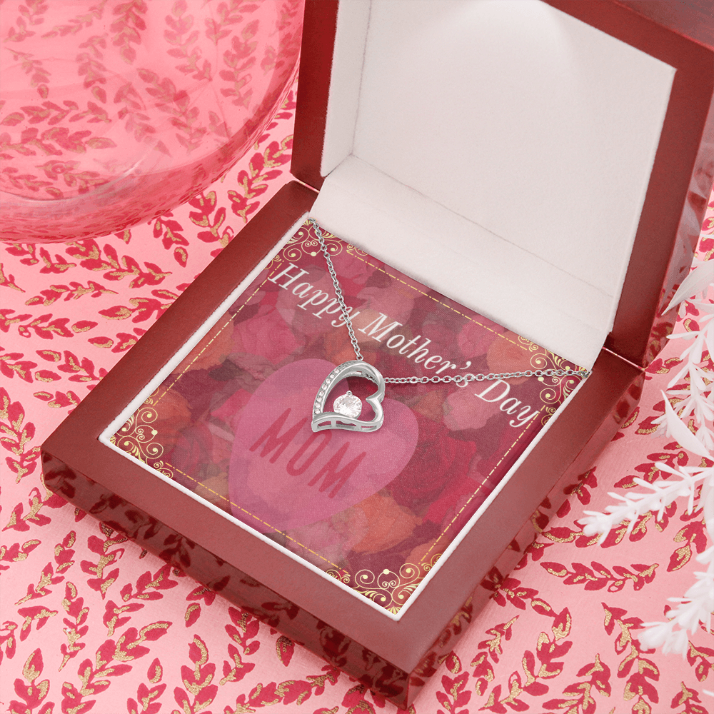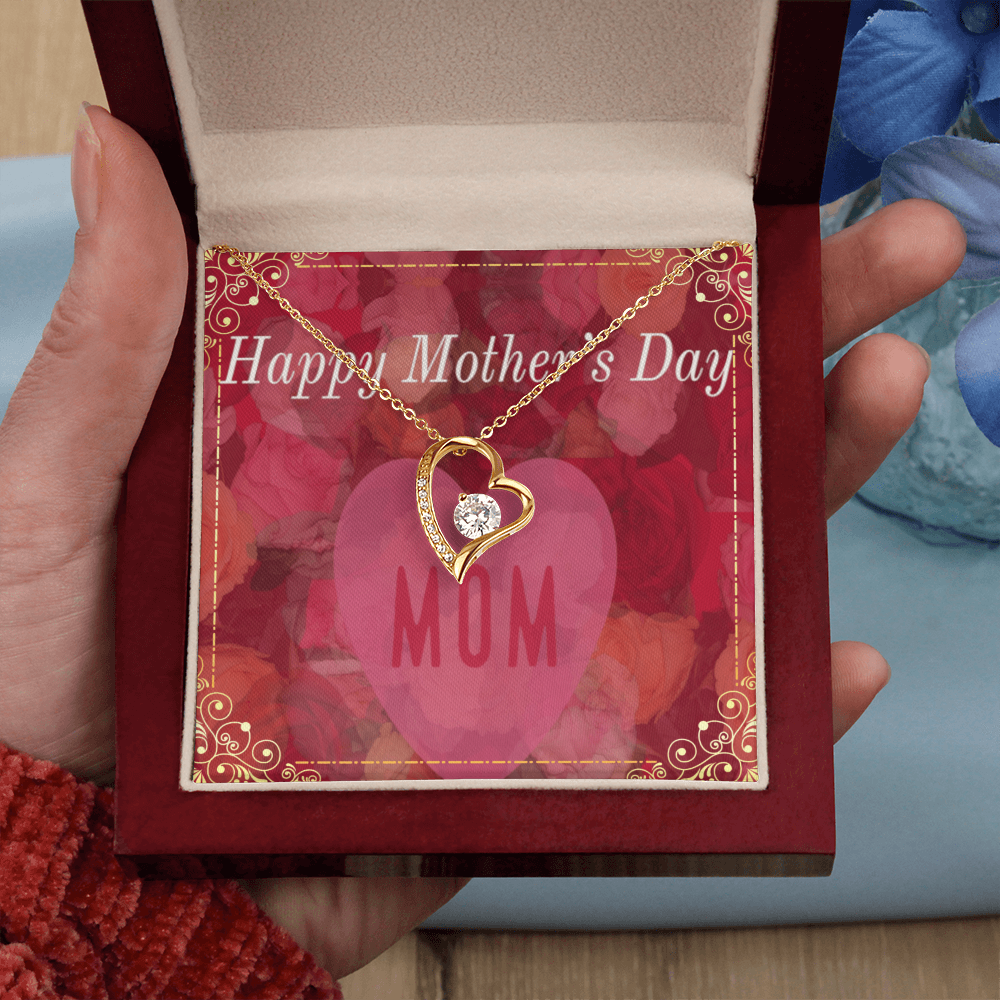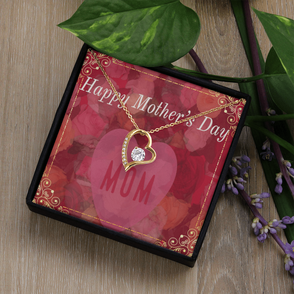 Happy Mother's Day Mom Red Roses with Forever Love Necklace