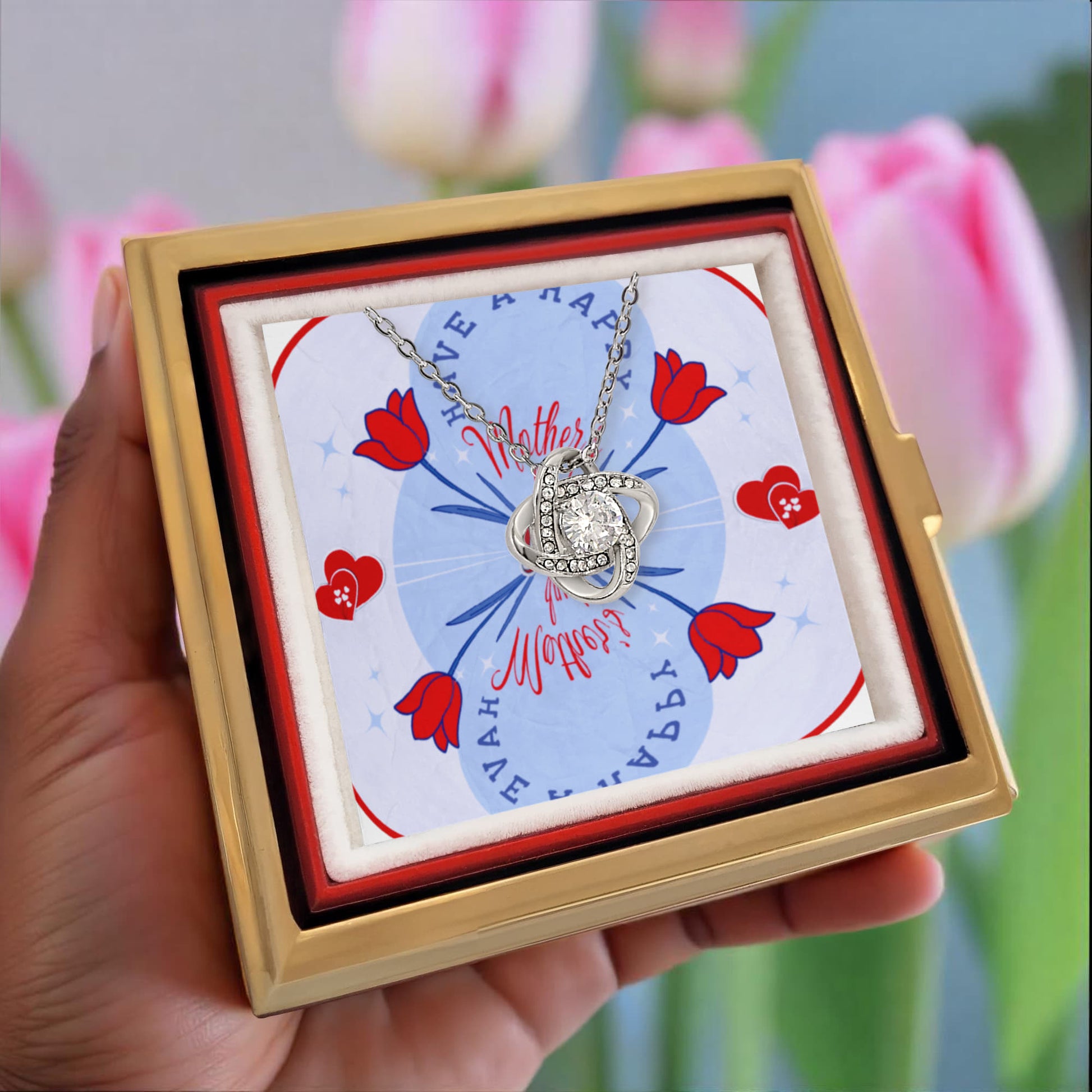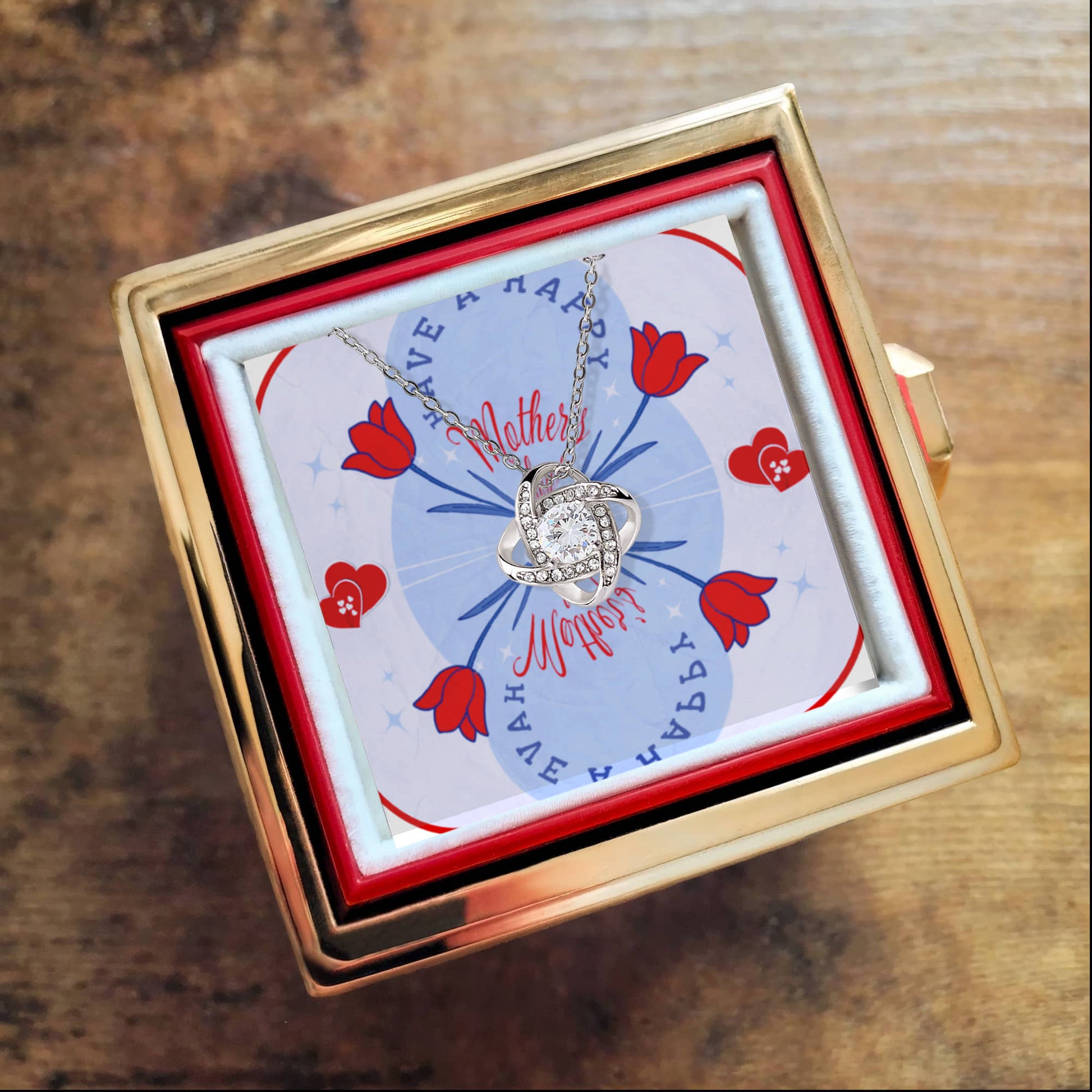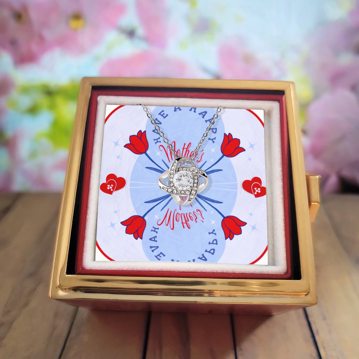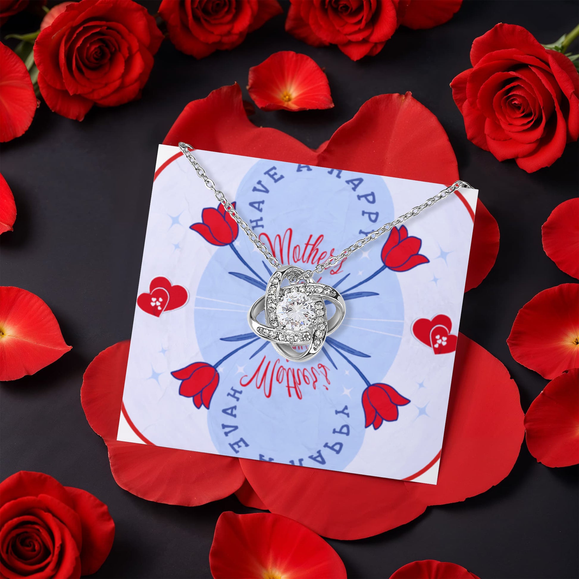 Have a Happy Mother's Day with Love Knot Necklace and Preserved Red Rose