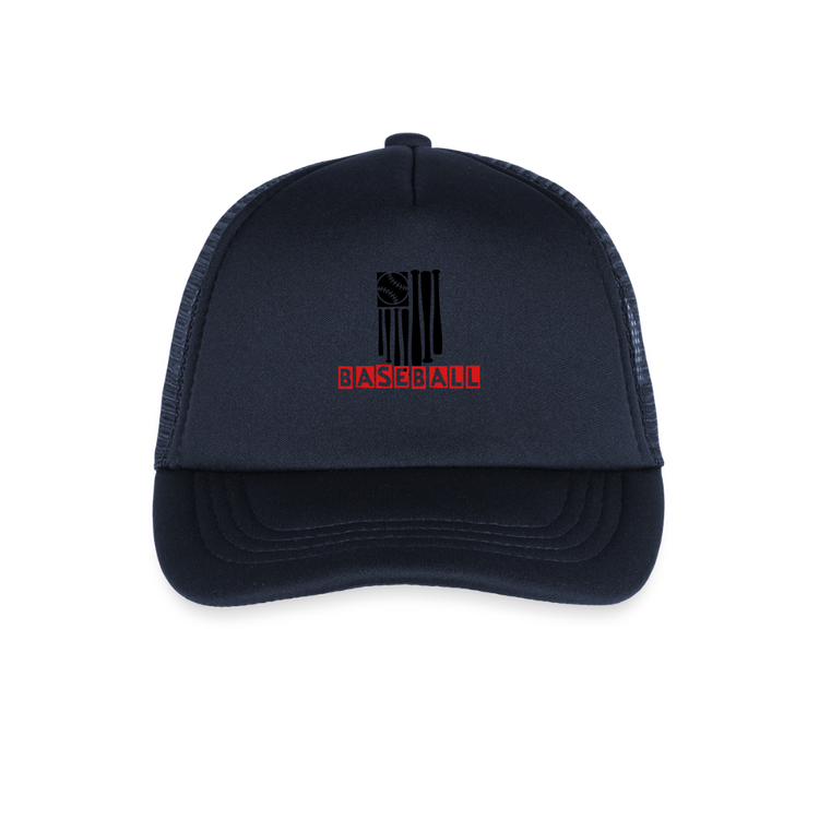 Trucker's cap for a child, that includes the words, Baseball and baseball items.