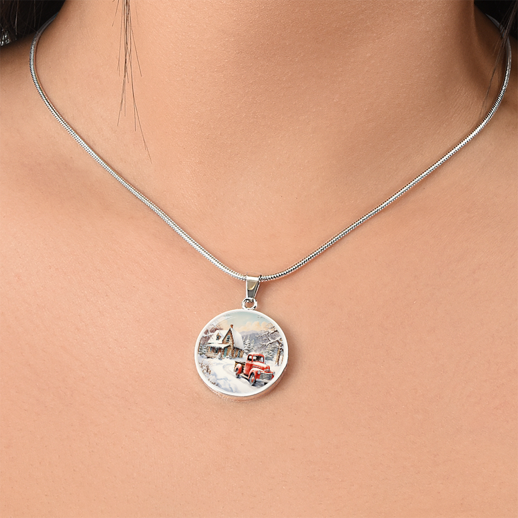 Collar de lujo con gráfico redondo de camión rojo antiguo
