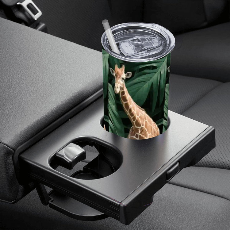 Tall Giraffe with Greenery 20oz Straight Stainless Steel Tumbler with Straw (Made in USA)