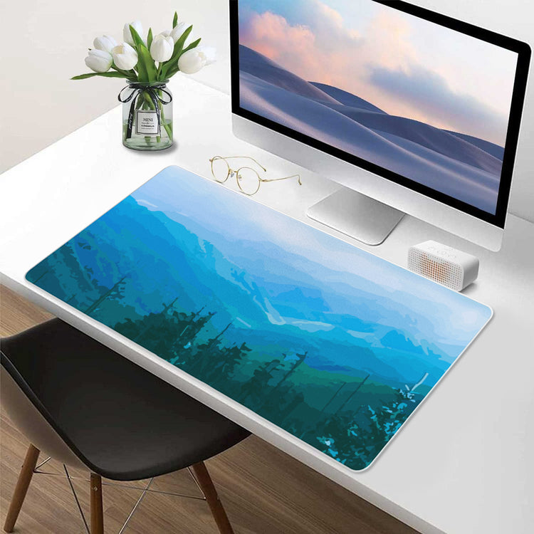 Transform your workspace into a serene mountain retreat with this expansive 40" x 20" desk mat featuring a breathtaking view of Tennessee's Great Smoky Mountains. The generous size provides ample coverage for your keyboard, mouse, and monitor base, while the stunning landscape imagery brings natural beauty and calm focus to your daily work. Crafted with a smooth, protective surface that safeguards your desk from scratches and spills, this mat combines functionality with inspiring design. Perfect for nature lovers, remote workers, and anyone seeking to elevate their workspace aesthetic with a touch of mountain majesty.