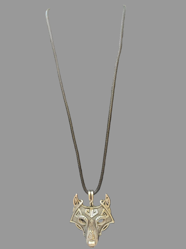 Wolf Silver Tone Necklace with Black Rubber String