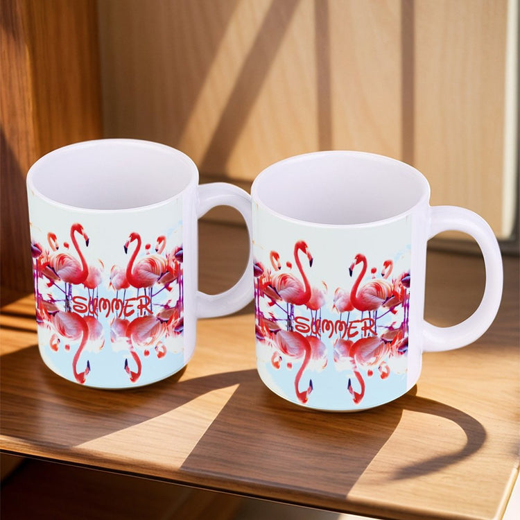 Bring tropical vibes to your daily routine with this charming 14oz ceramic mug featuring a delightful pink flamingo summer design. Crafted right here in the USA, this durable white mug is perfect for your morning coffee, afternoon tea, or favorite beverage. The comfortable handle ensures a secure grip, while the vibrant artwork adds a cheerful pop of color to your kitchen or desk. Whether you're a flamingo enthusiast or simply love summery aesthetics, this mug makes an ideal gift for friends and family who appreciate quality craftsmanship and playful style.