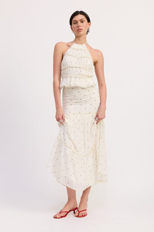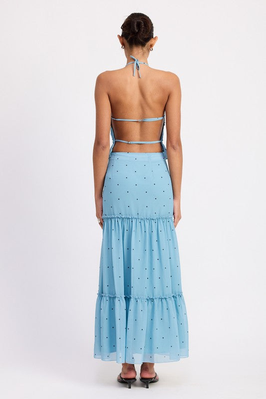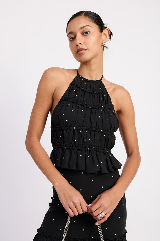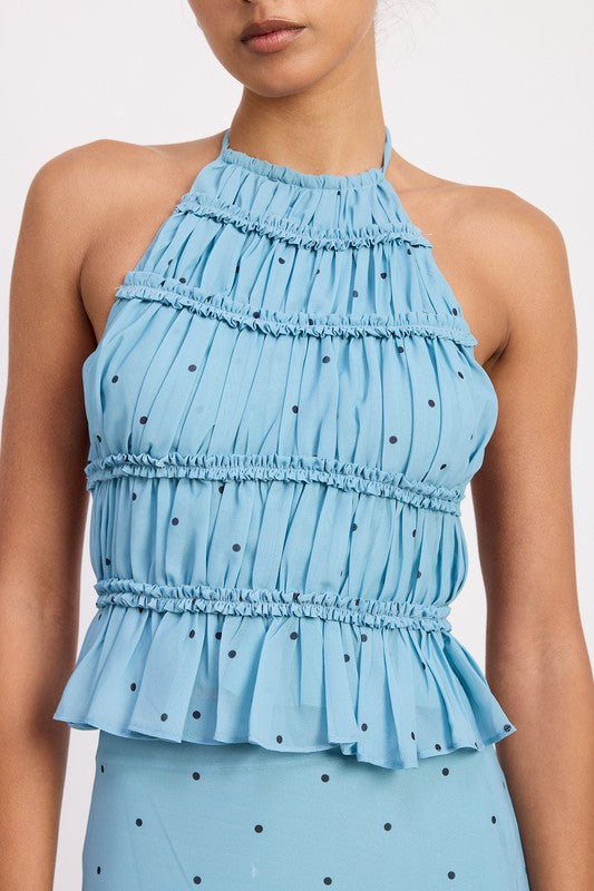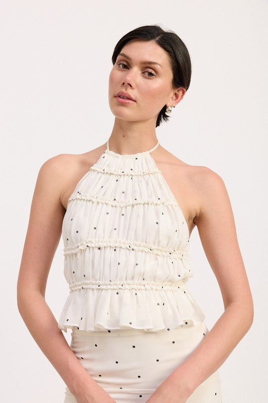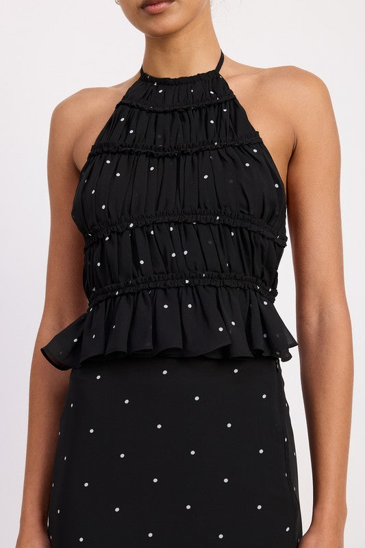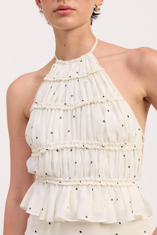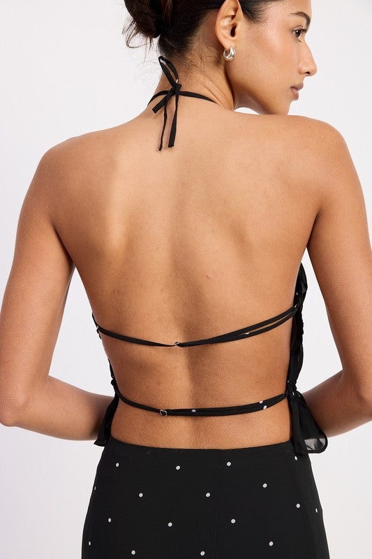 Women's Backless Polka Dot Halterneck Ruffled Top
