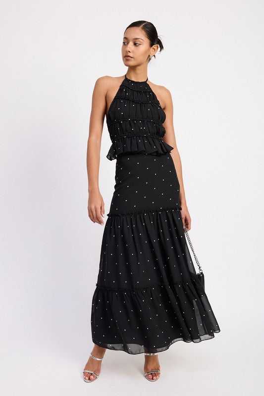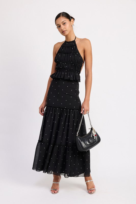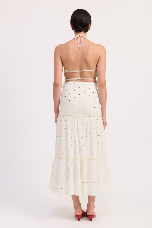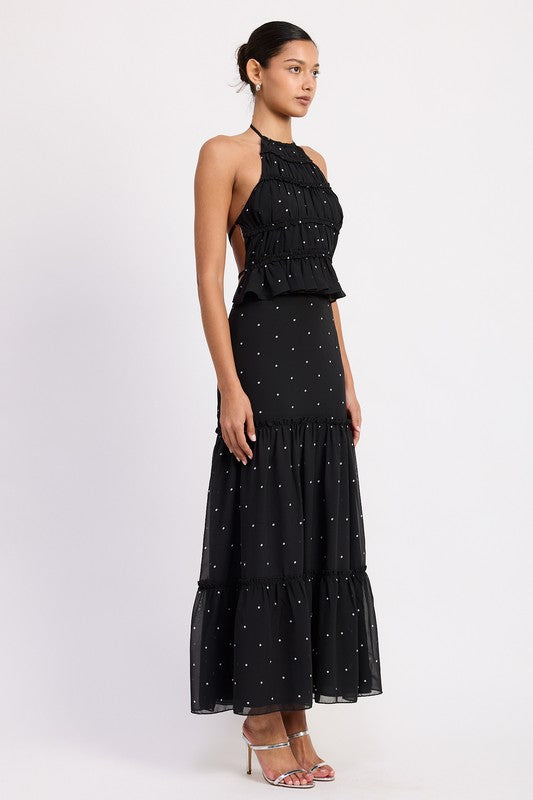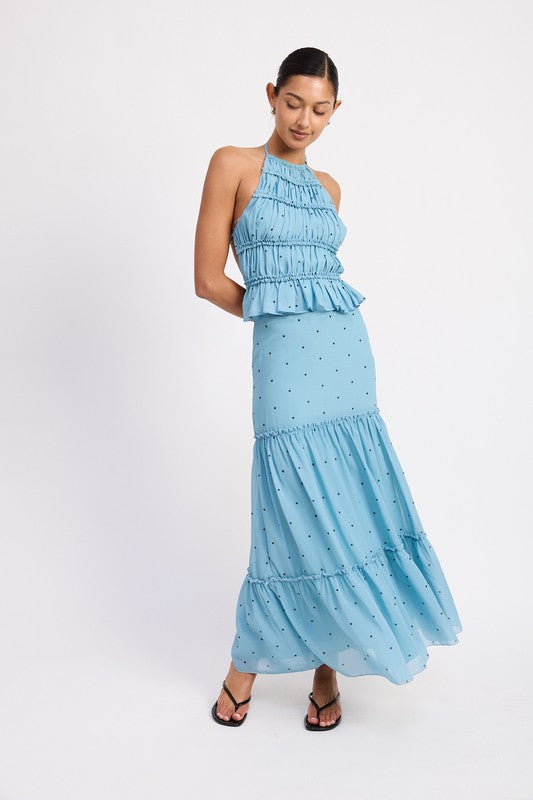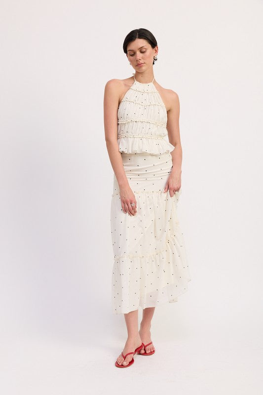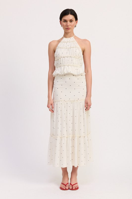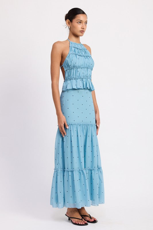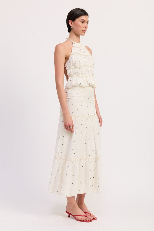 Women's Backless Polka Dot Halterneck Ruffled Top