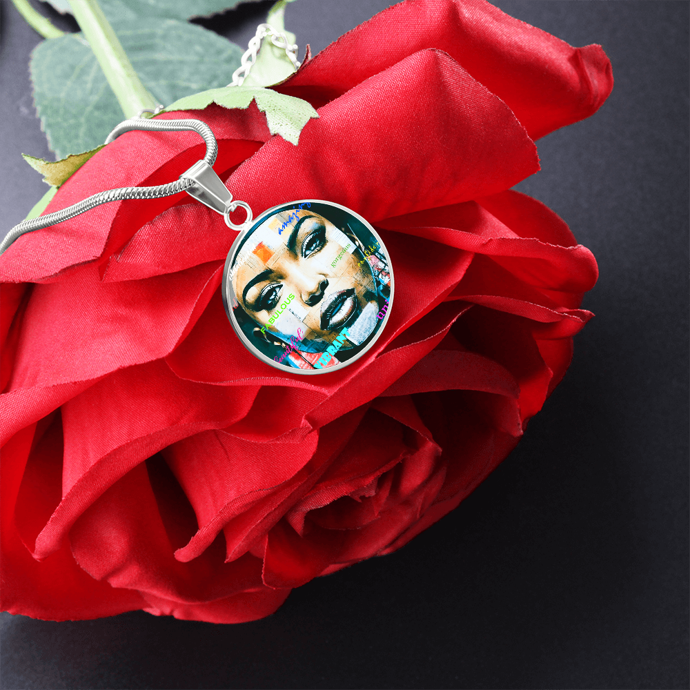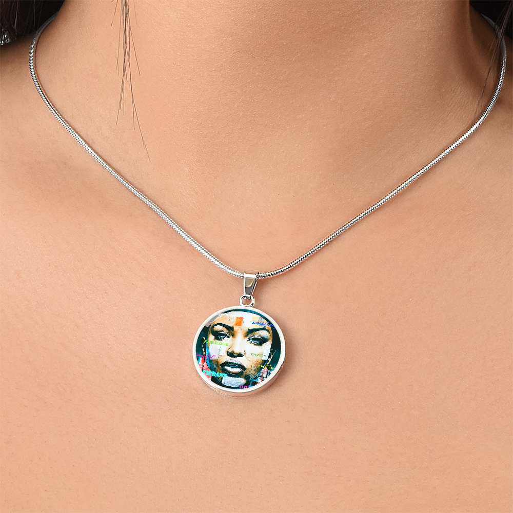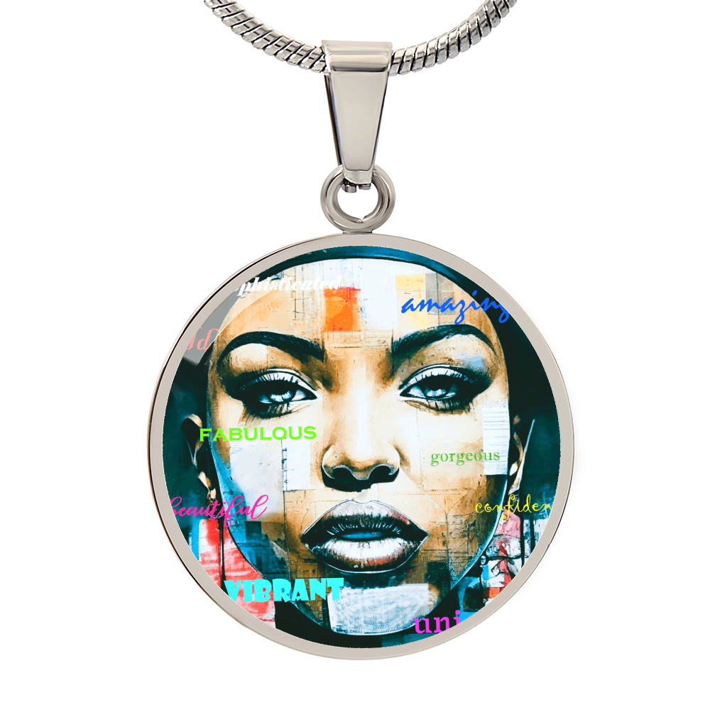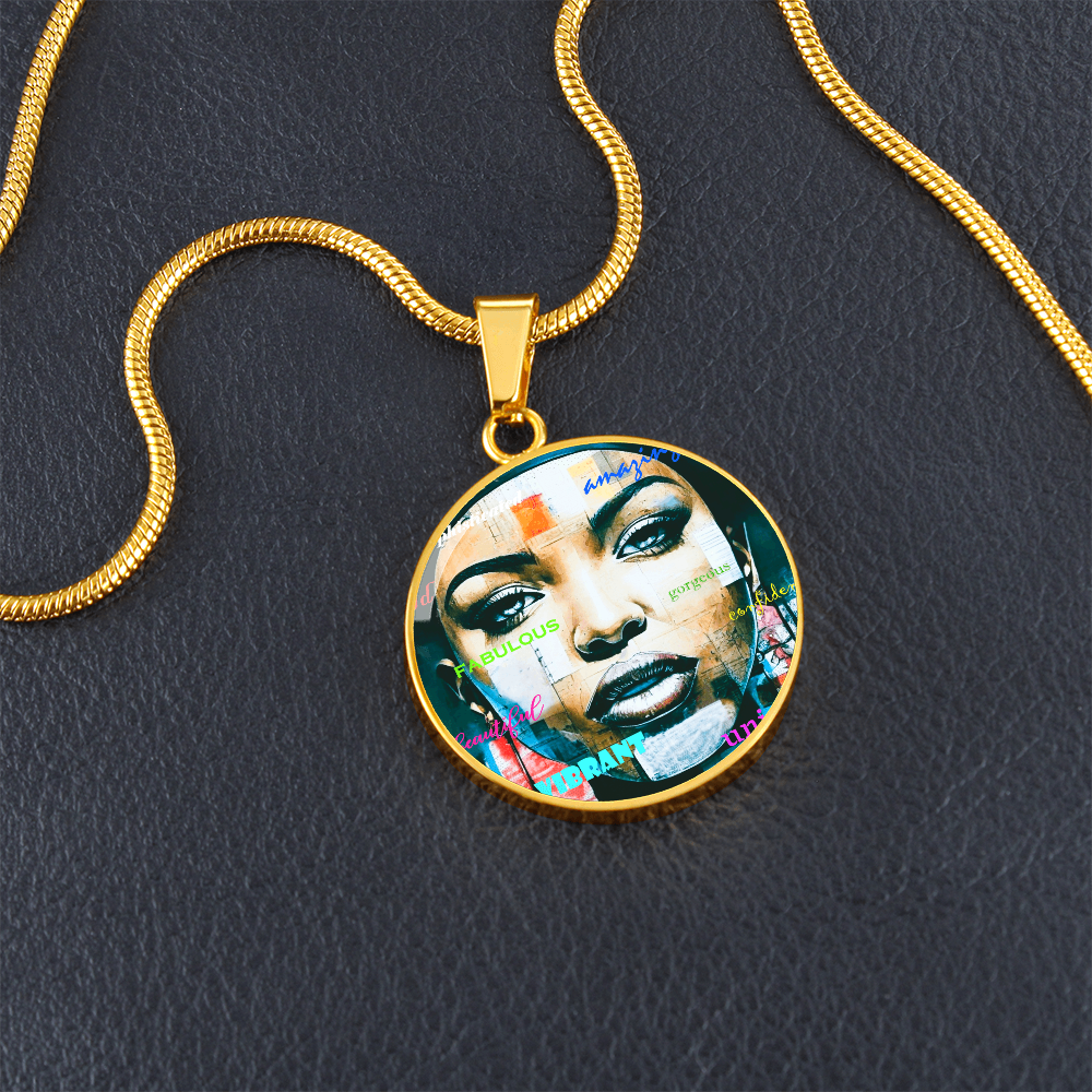 Beautiful Confident Woman Luxury Graphic Round Necklace