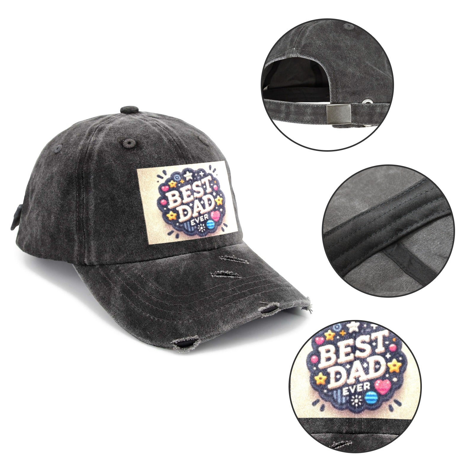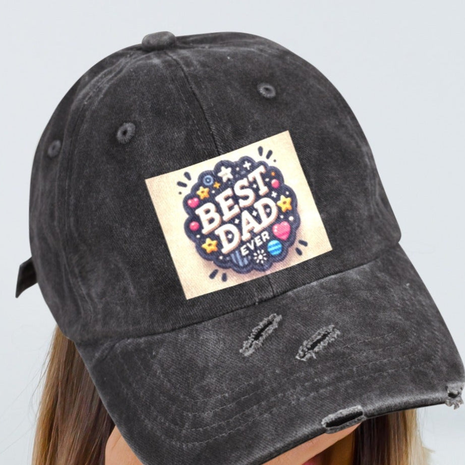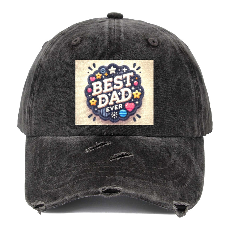 Best Dad Ever Circle Distressed Baseball Cap (Made in USA)