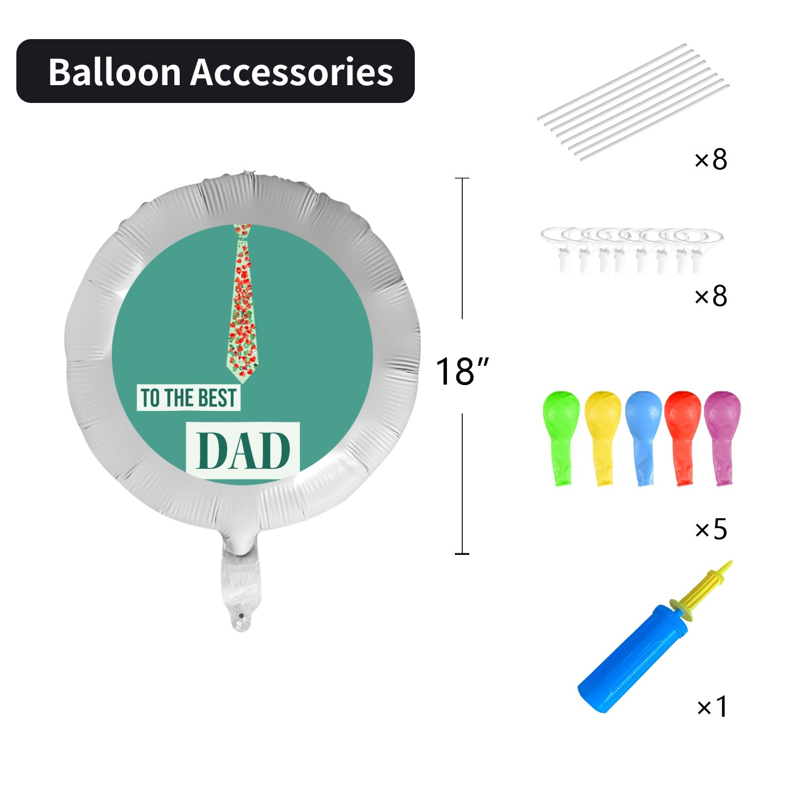 Celebrate the special father in your life with our exclusive "Best Dad Ever" polka dot balloons. Each 18-inch aluminum foil balloon in this pack of 3 delivers premium quality and long-lasting float time. Proudly made in the USA, these eye-catching decorations will make Dad feel truly appreciated at his birthday, Father's Day celebration, or any special occasion. The package includes 3 foil balloons, 8 sticks and balloon holders, along with an inflator pump and 5 regular balloons. Order now to transform your next family gathering into an unforgettable event and receive free shipping in the USA!