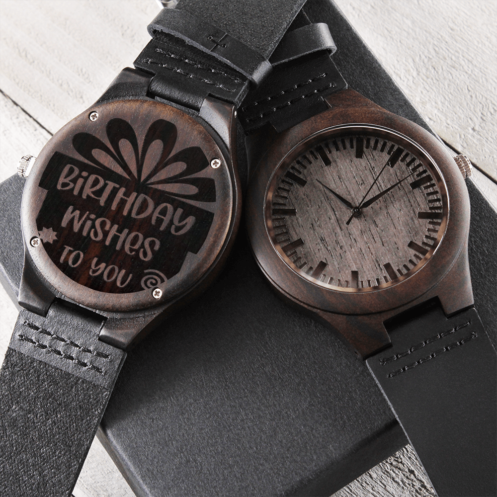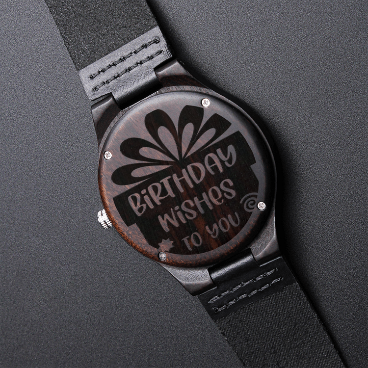 Birthday Wishes to You Engraved Wooden Watch with Leather Strap