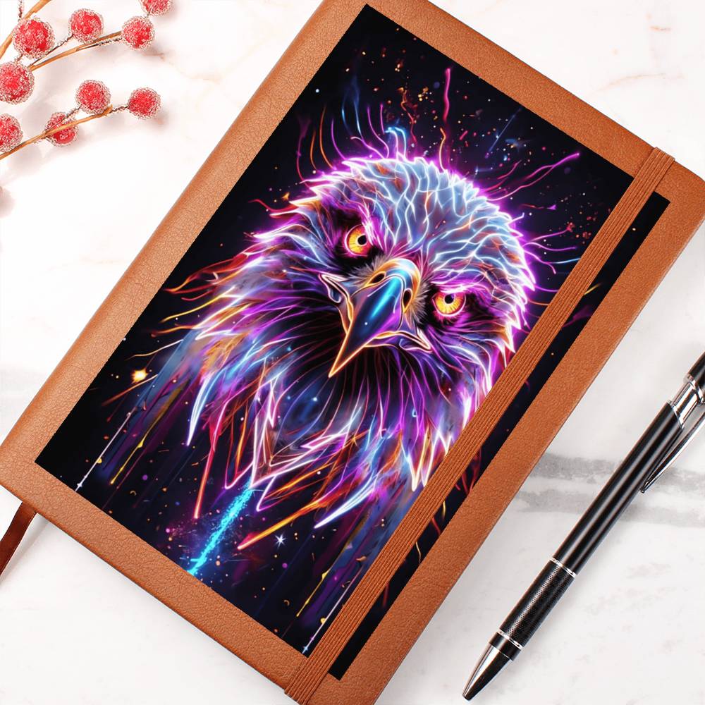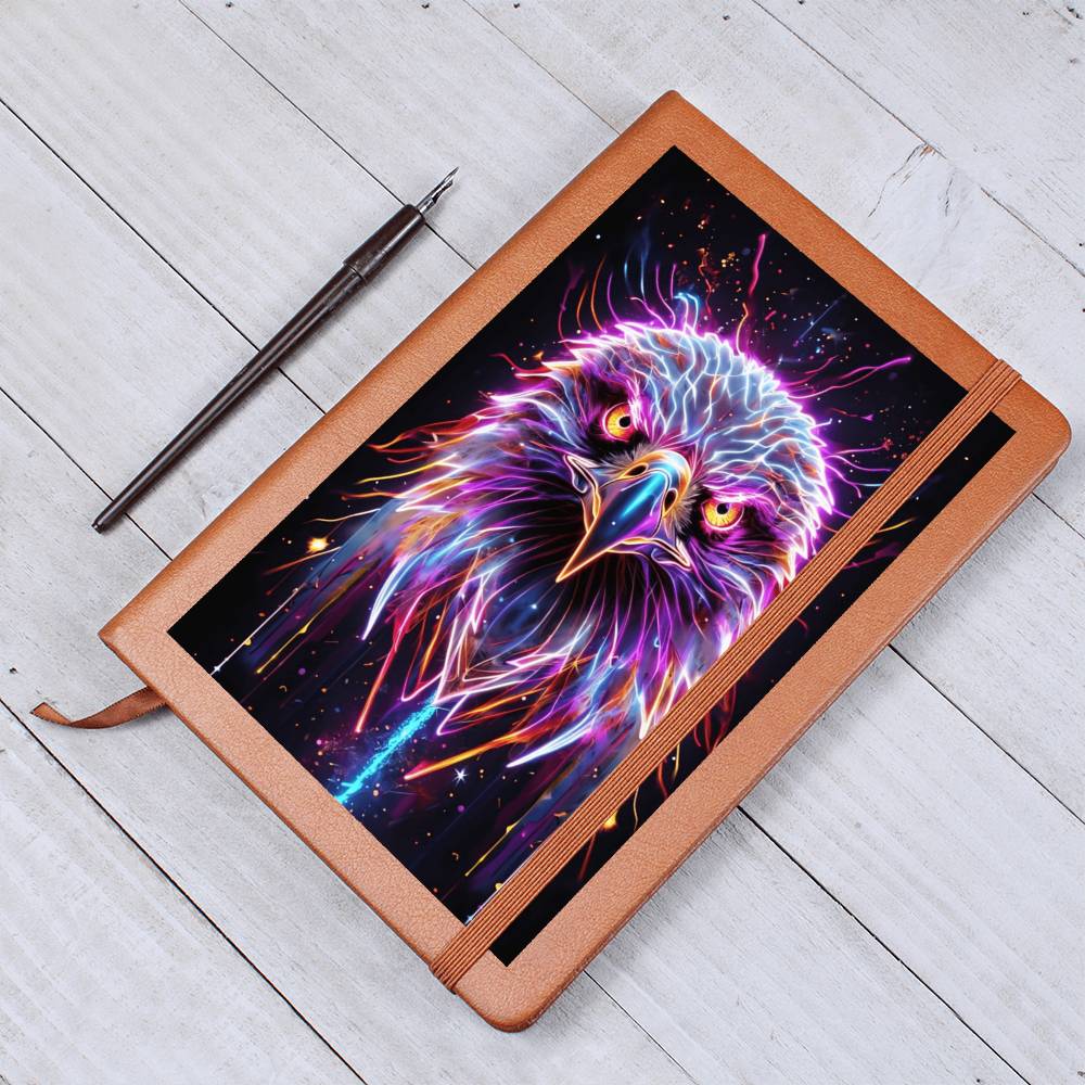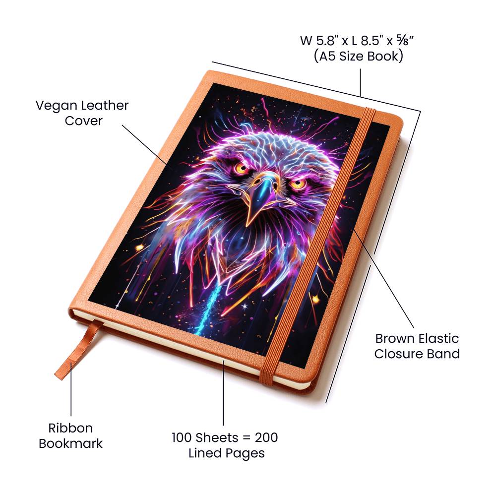 Discover the bold beauty and fiery spirit of the Electric Eagle USA Graphic Leather Journal. Let the striking graphic design awaken your senses and inspire your words to take flight. With its premium leather cover, this journal is perfect for capturing your thoughts and ideas wherever you go.  Includes free shipping in the USA!