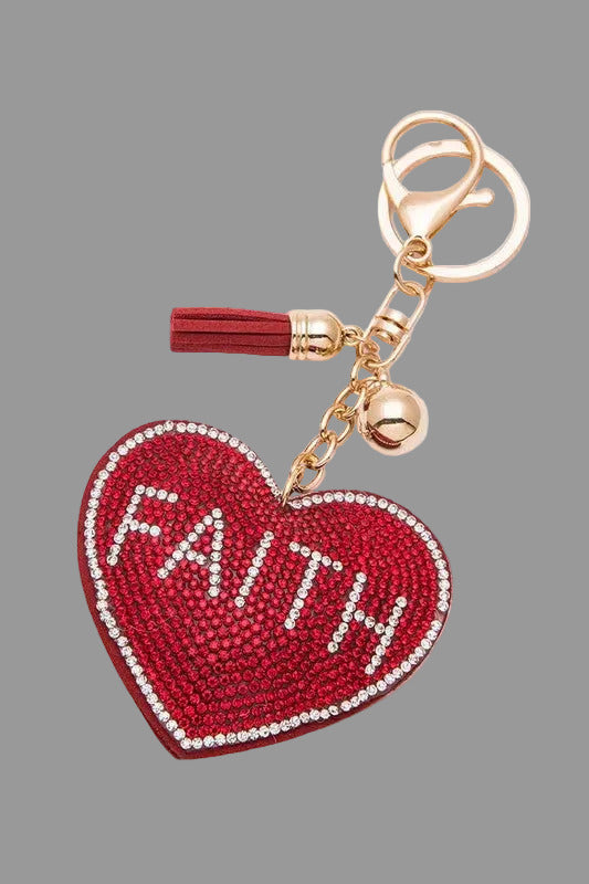 Faith Crystal Puff Heart Key Chain