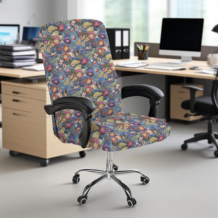 Transform your workspace with this striking faux embroidered office chair cover featuring an intricate blue quilt pattern. Handcrafted in the USA, it combines authentic artisanal quality with practical functionality. The detailed embroidered design adds sophisticated visual interest to any office setting while protecting your chair from daily wear. Easy to install and maintain, this cover breathes new life into tired furniture and creates a polished, curated look that reflects your personal style. Elevate your workspace aesthetic without breaking the bank.