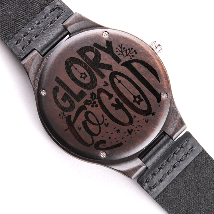 Glory to God Religious Engraved Wooden Watch