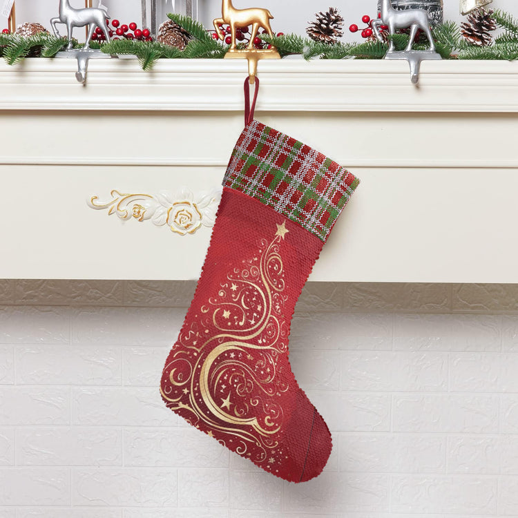 Gold Christmas Tree on Red Sequin Christmas Stocking (Made in USA)