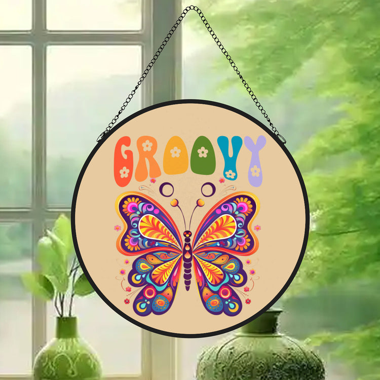 Bring retro vibes into your space with this groovy butterfly glass suncatcher. Featuring a playful 70s-inspired design, this decorative piece catches sunlight beautifully, casting colorful patterns through windows and creating a cheerful focal point. Handcrafted glass construction ensures durability while the butterfly motif adds whimsy and personality to any room. Perfect for vintage lovers and anyone seeking a nostalgic touch that brightens their home with natural light and artistic flair.