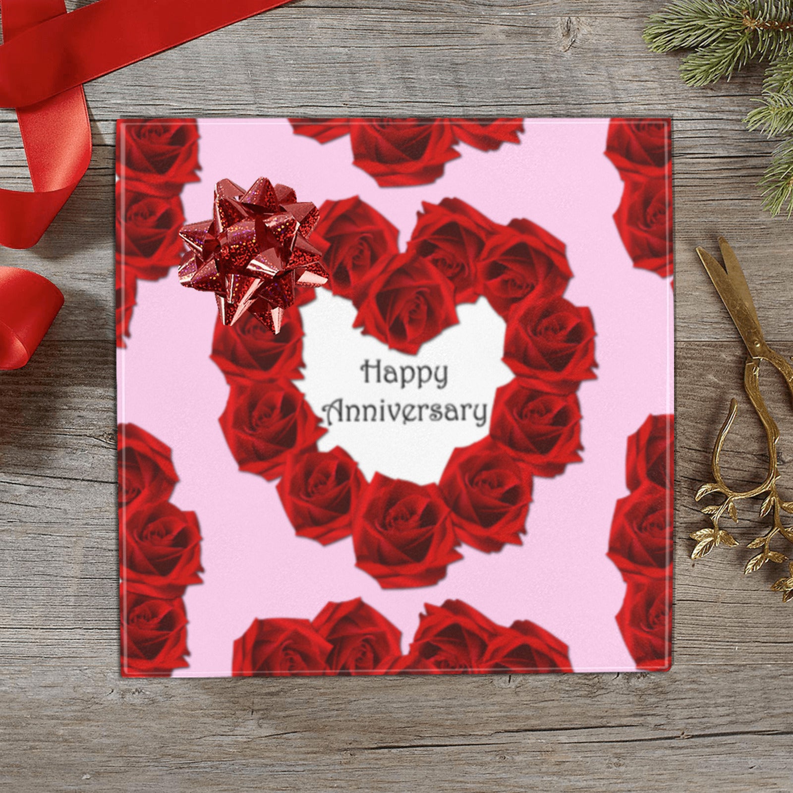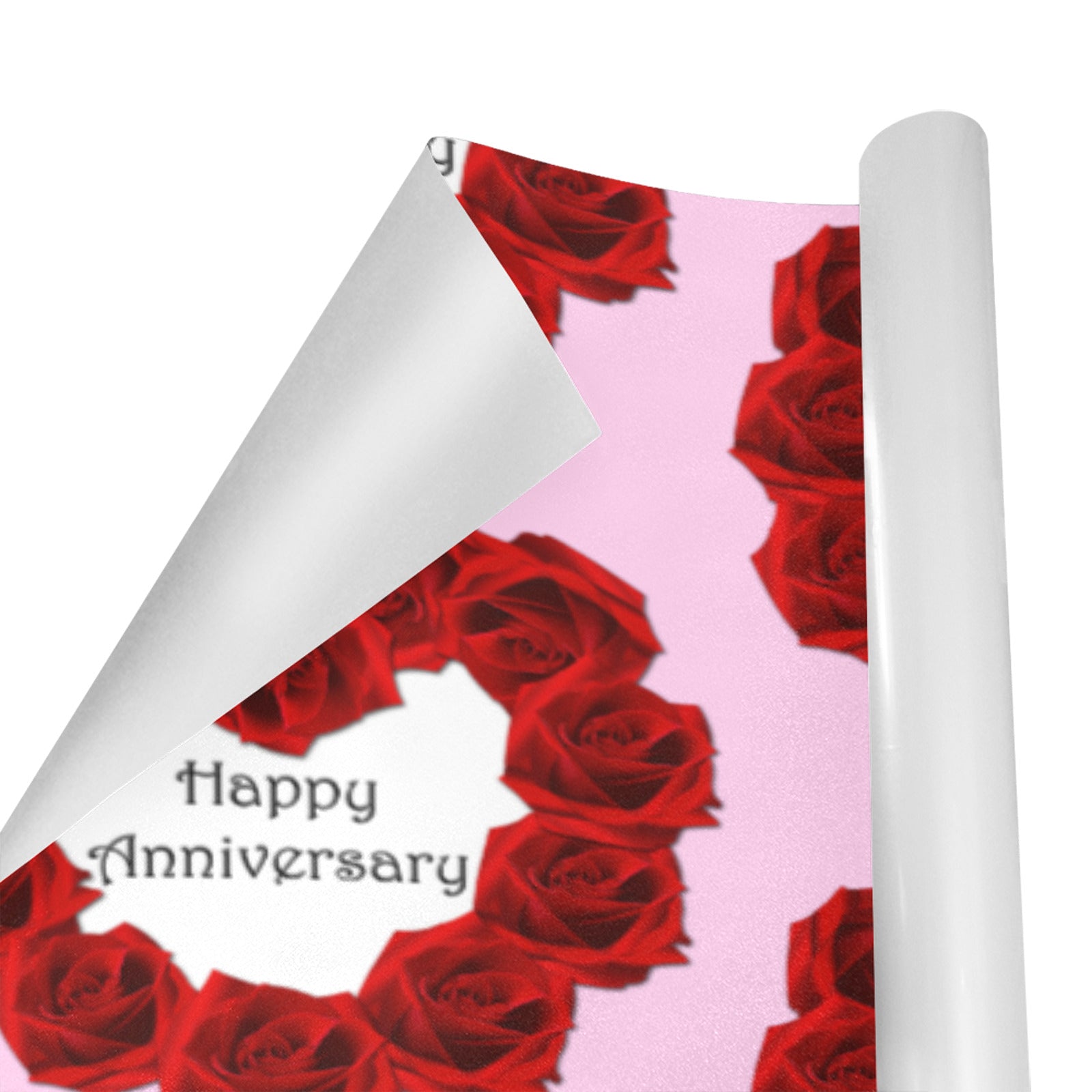 Celebrate your special day with our Happy Anniversary Custom Gift Wrapping Paper, featuring elegant red roses on a 58" x 23" sheet. Made in the USA, this high-quality wrapping paper adds a personal and romantic touch to your gifts, making every present unforgettable. Perfect for anniversaries, it enhances the joy of giving with its beautiful design and generous size. Make your loved one feel truly cherished with a gift wrapped in love.  Order today and receive free shipping in the USA!