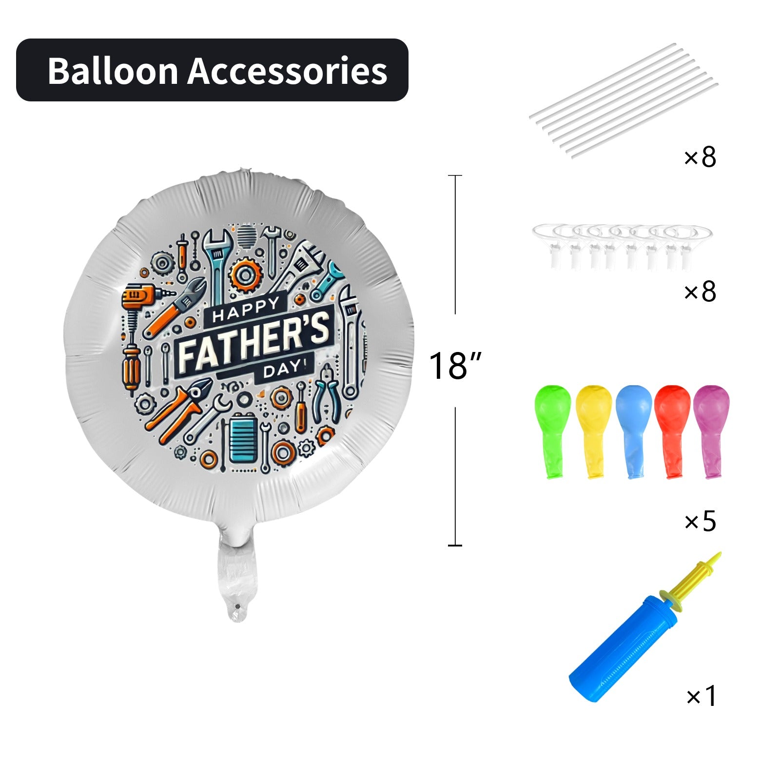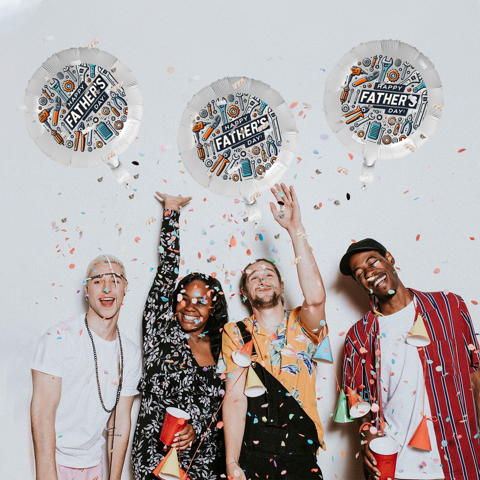 Celebrate Dad in style with our exclusive 18-inch aluminum foil balloons featuring festive tool designs. This premium pack of 3 American-made balloons adds the perfect decorative touch to your Father's Day celebration. Durable, eye-catching, and ready to impress, these high-quality balloons will make Dad feel truly special while elevating your party décor. Order now to ensure timely delivery for the big day!  Order today and receive free shipping in the USA.