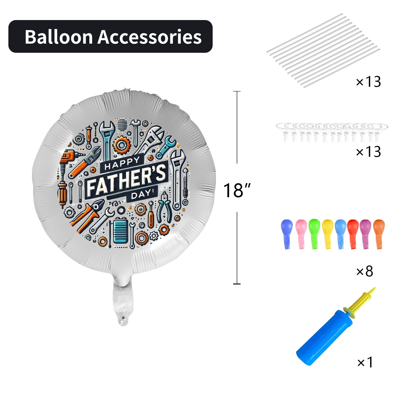 Celebrate Dad in style with our exclusive Happy Father's Day Tools Foil Balloons! This premium pack of five 18-inch custom foil balloons features charming tool designs that perfectly honor the handyman in your life. Proudly made in Queens, these high-quality balloons create an instant festive atmosphere for Father's Day celebrations. Make this year's celebration unforgettable with decorations as dependable as Dad himself!  Order today and receive free shipping in the USA!
