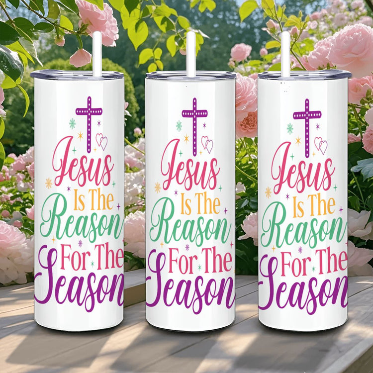 Jesus is the Reason for the Season 20oz Straight Stainless Steel Tumbler with Straw(Made in USA)