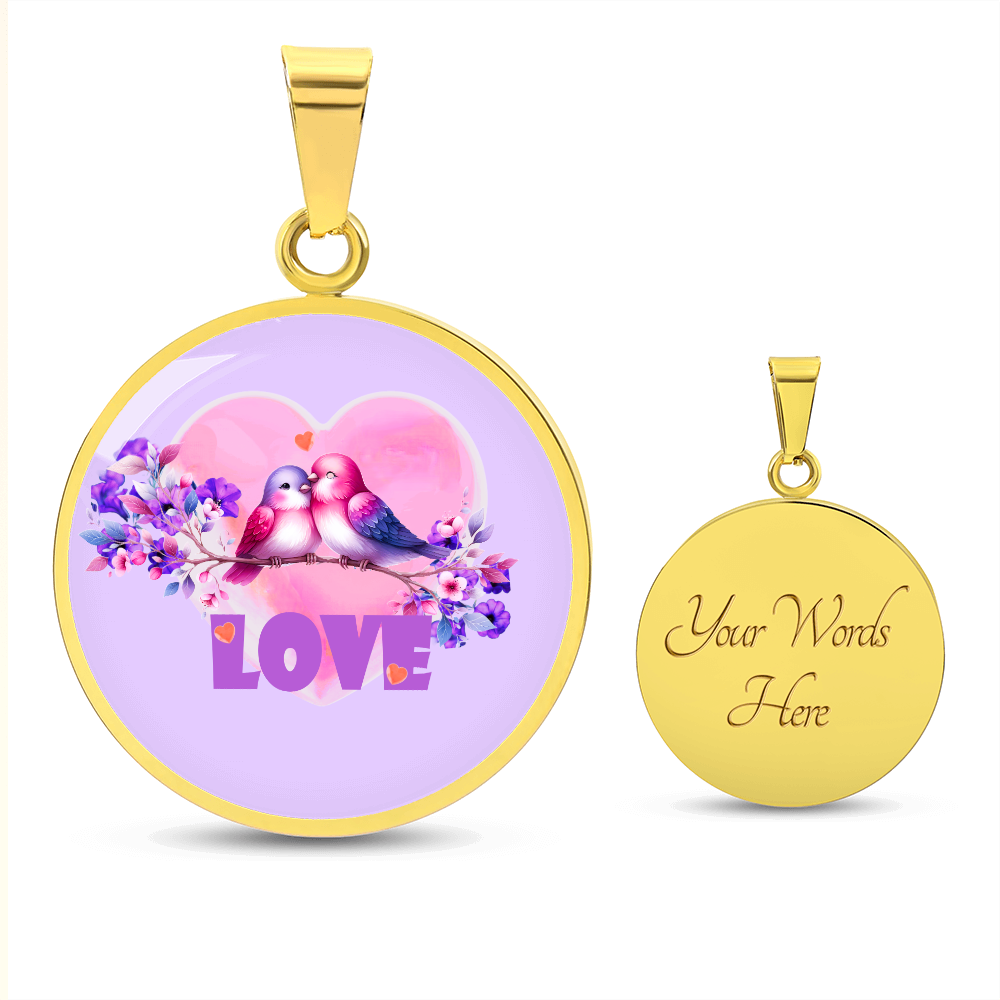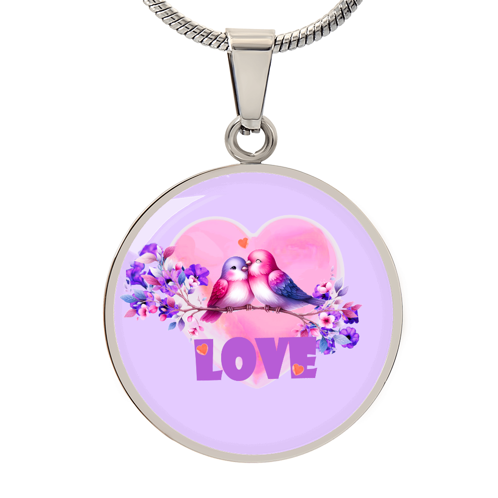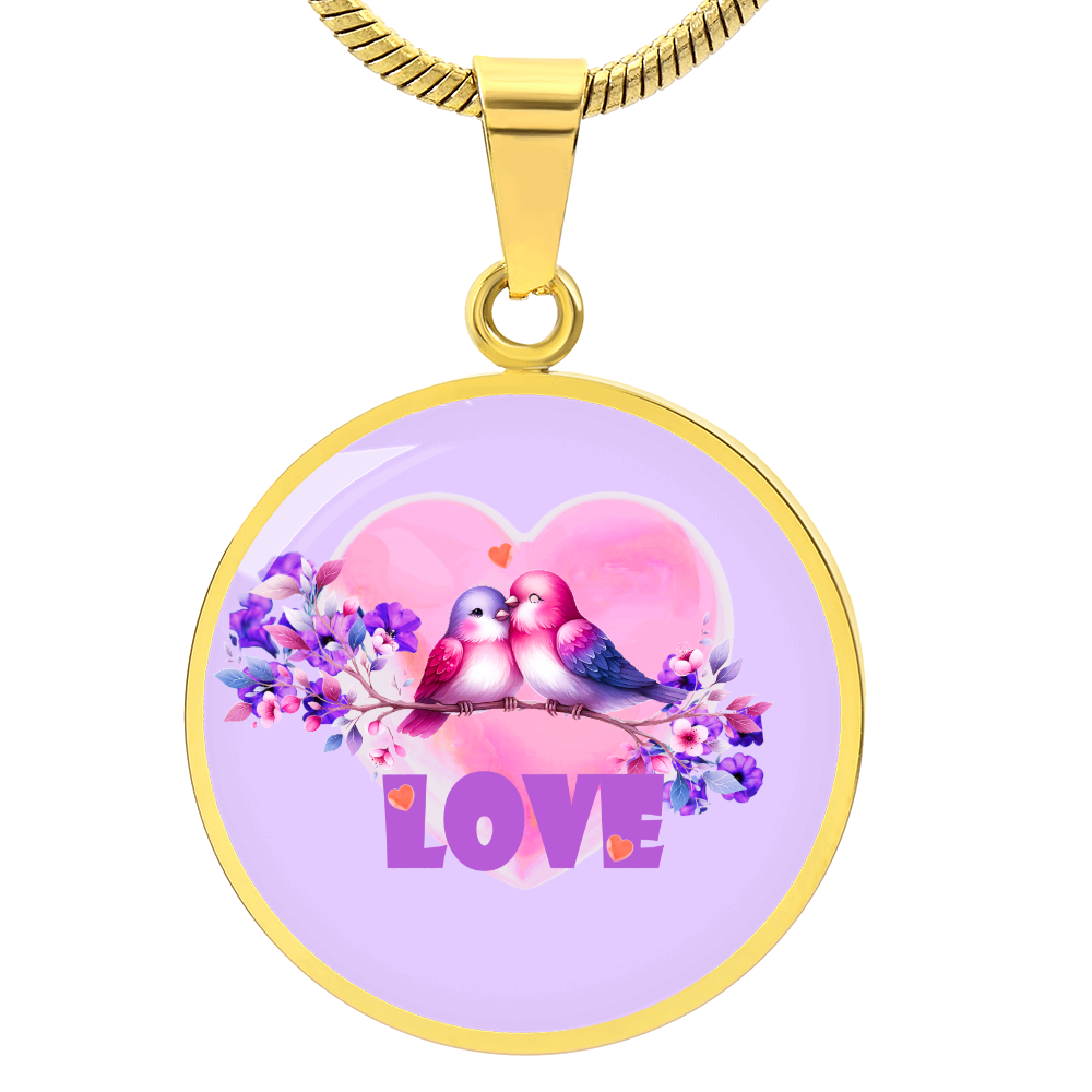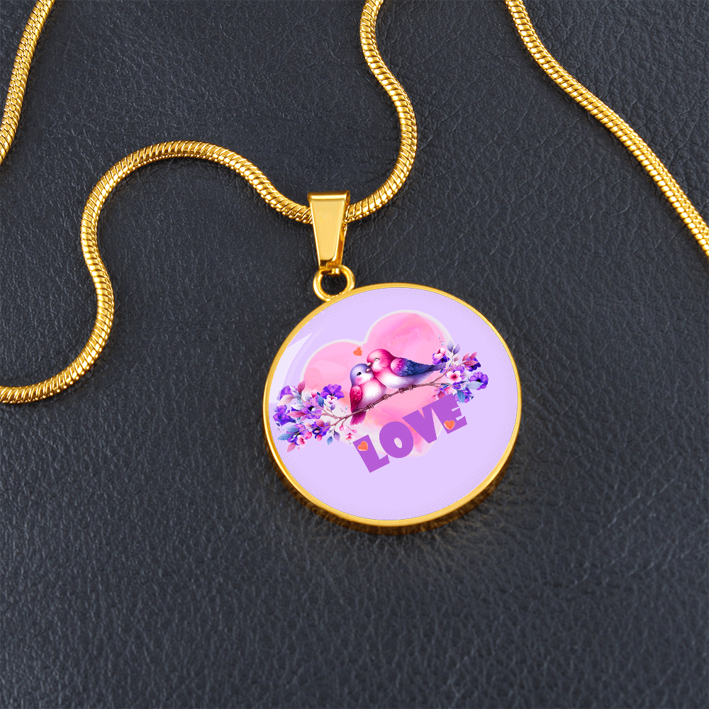 Love Birds in Love Purple Round Graphic Luxury Necklace