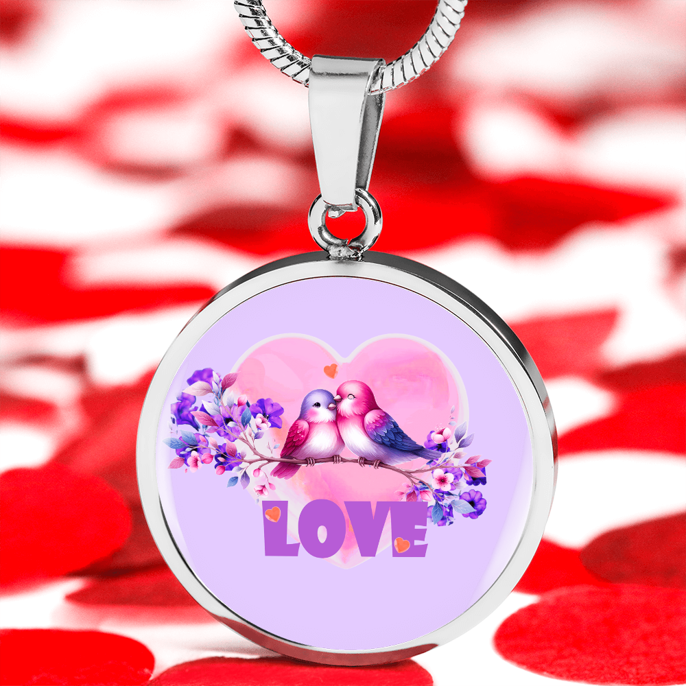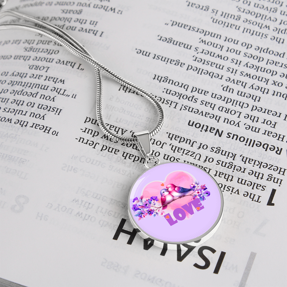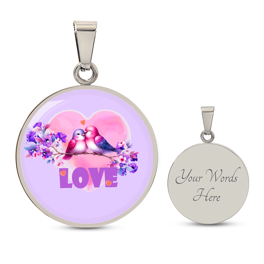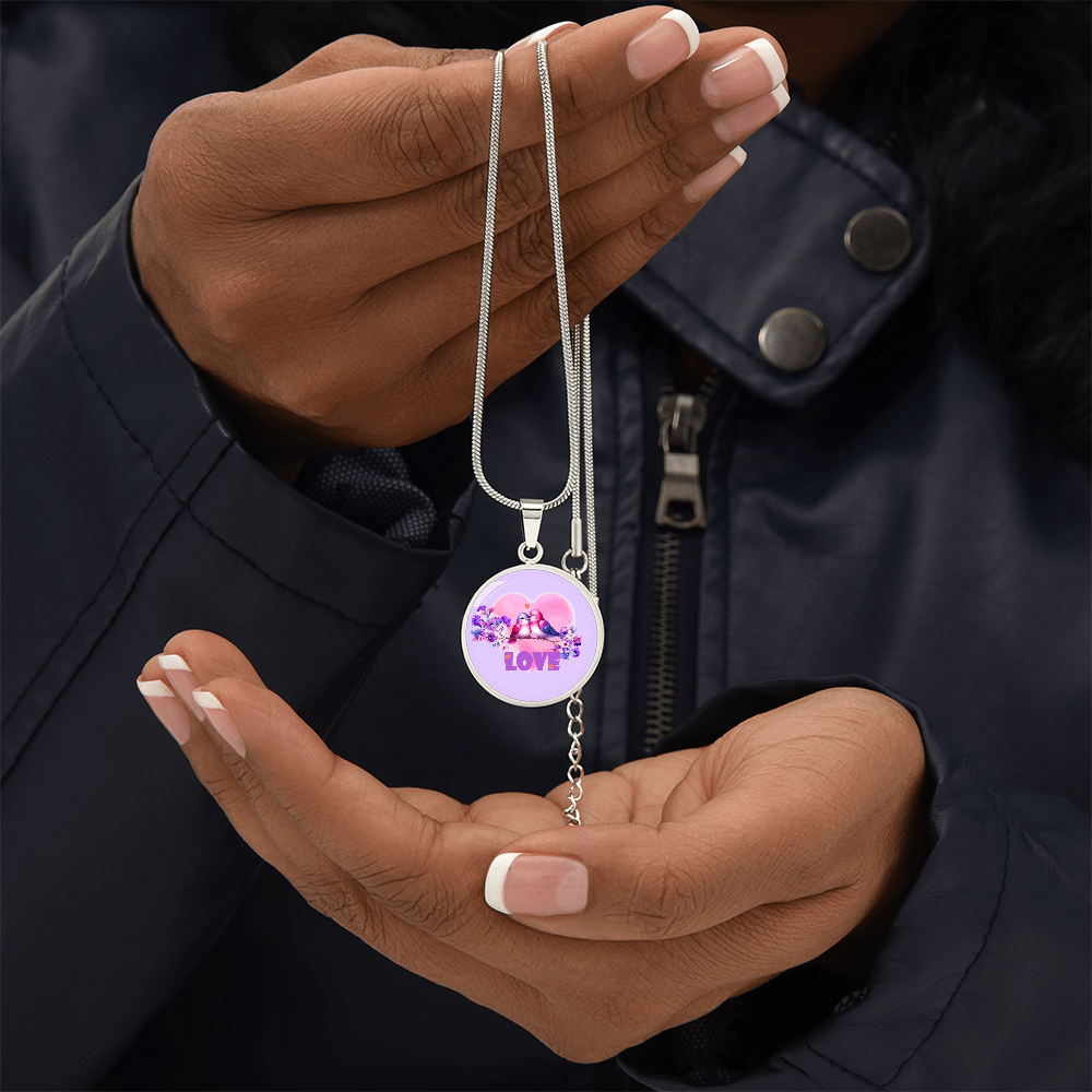 Love Birds in Love Purple Round Graphic Luxury Necklace