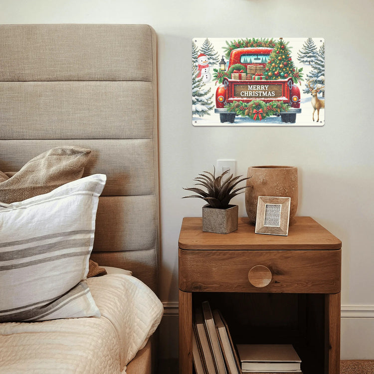 Celebrate the season with this charming vintage-inspired aluminum metal sign featuring a nostalgic red truck adorned with festive holiday cheer. Measuring 12" x 8", this durable piece brings warmth and character to any space—whether displayed indoors or out. Proudly made in the USA, it combines quality craftsmanship with timeless appeal. Perfect for adding a touch of rustic Christmas spirit to your home, porch, or cabin, this sign captures the magic of traditional holiday memories. Its weather-resistant construction ensures lasting beauty year after year, making it an investment in festive decor that truly stands the test of time.