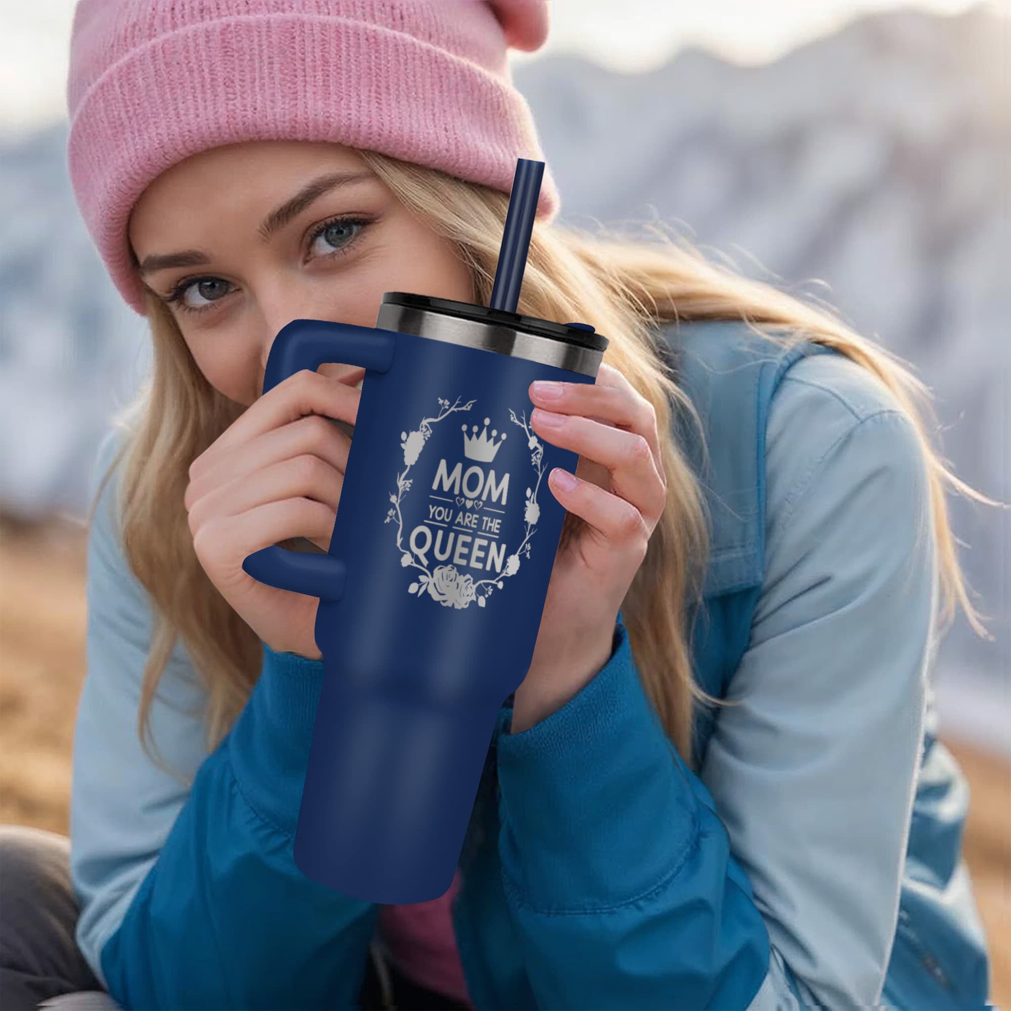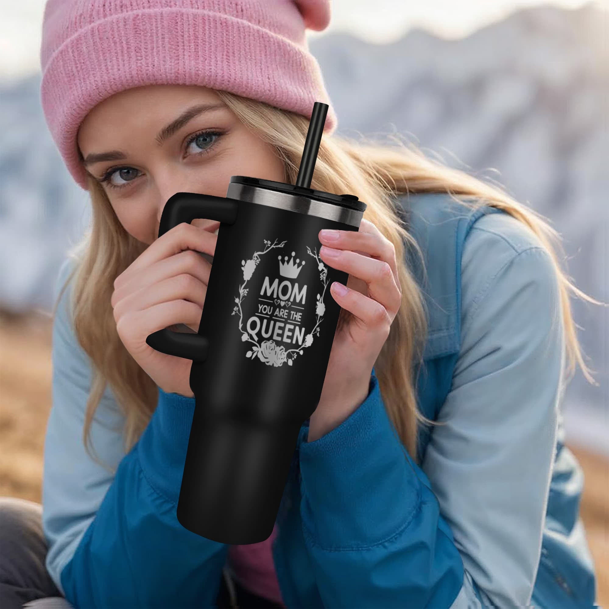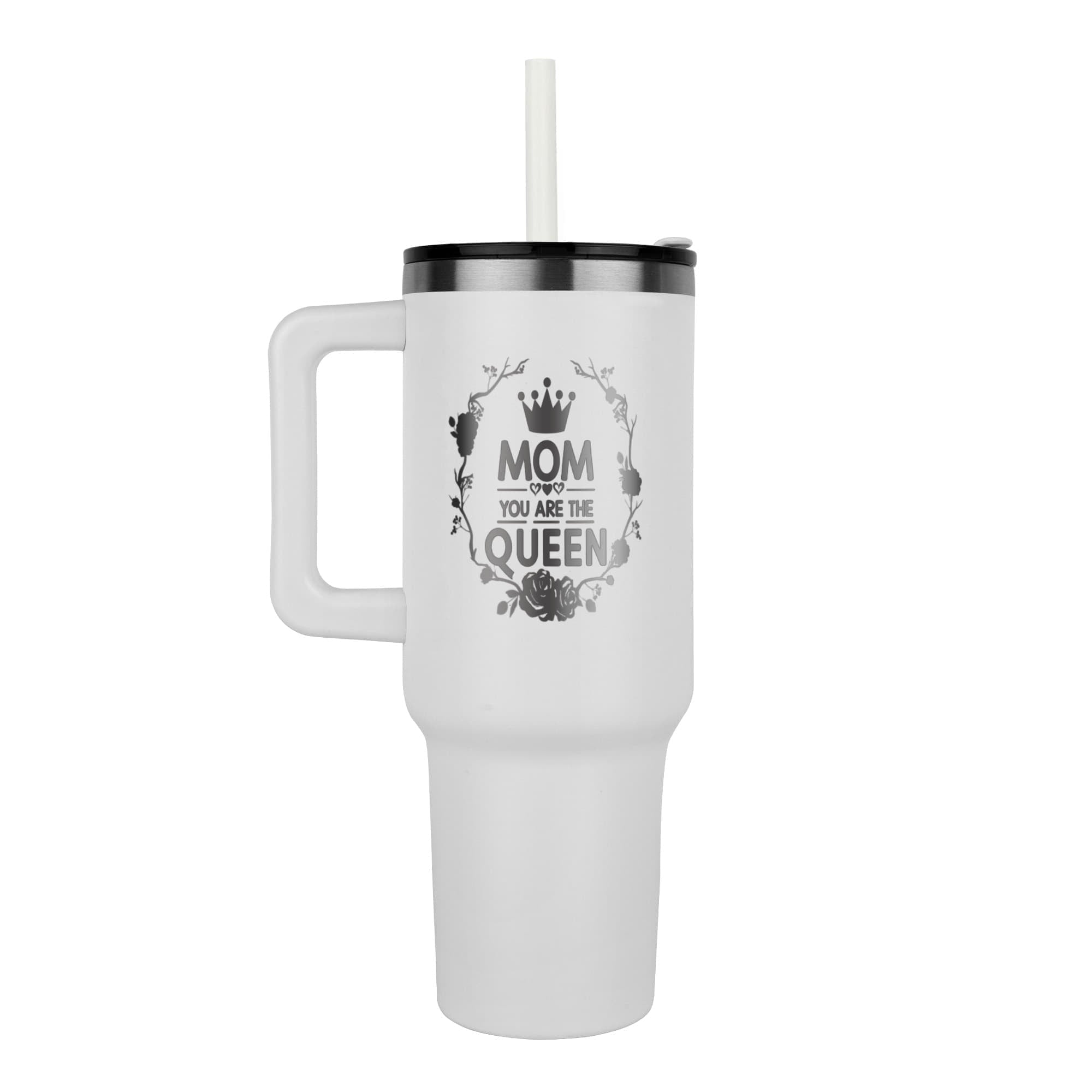 Elevate your mom's morning routine with the Mom You Are the Queen Pinnacle 40 oz Tumbler. Designed with a stylish and sturdy design, this tumbler keeps drinks hot or cold for hours. Perfect for on-the-go moms who deserve a royal treatment. Say it with us, Mom - you are the queen!  Order now and receive free shipping in the USA!