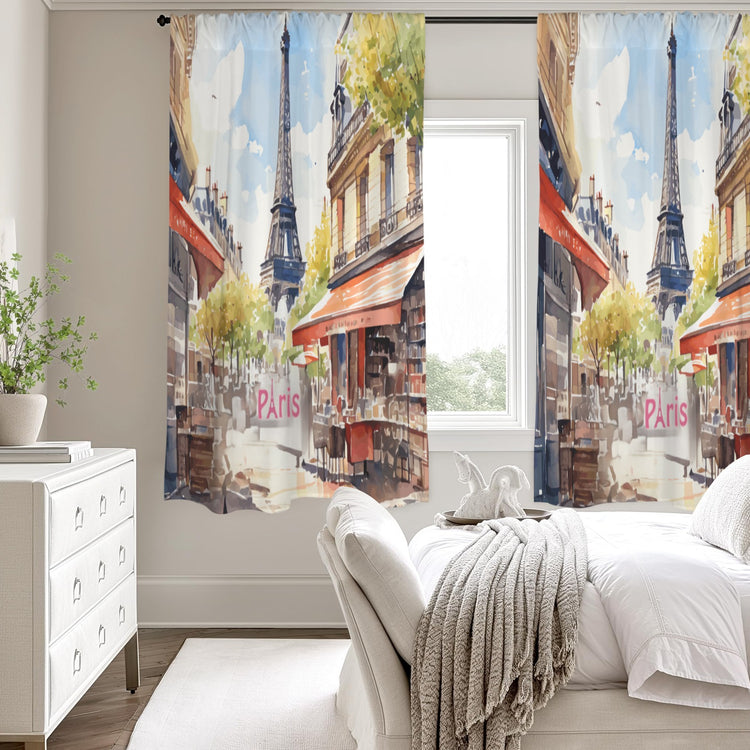 Elevate your living space with these elegant Eiffel Tower Paris France window curtains, measuring 52" x 63". Crafted in the USA, these 2 panels combine quality and style to bring a touch of Parisian charm to any room. Perfect for adding sophistication while providing privacy and light control, these curtains transform your windows into a stunning focal point.