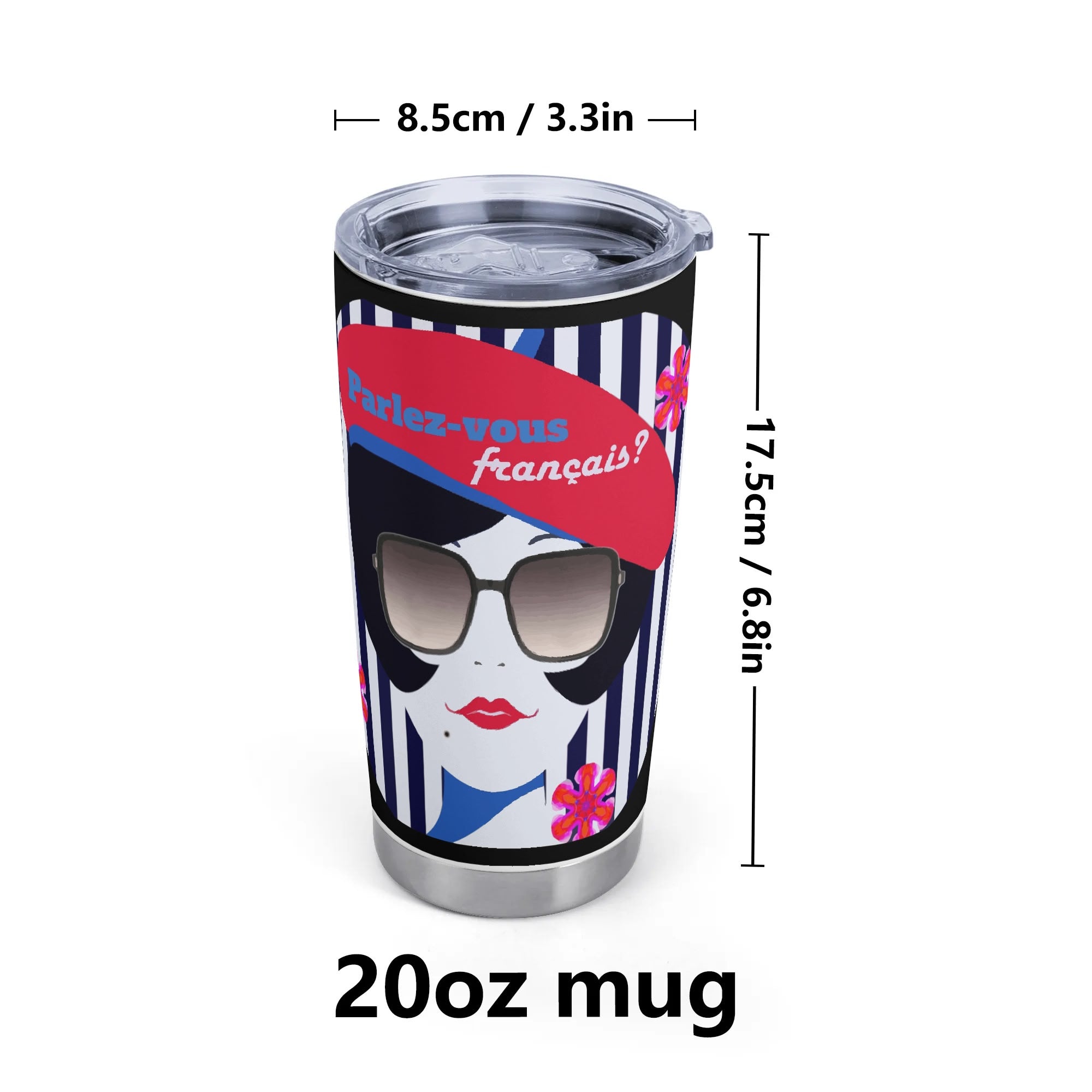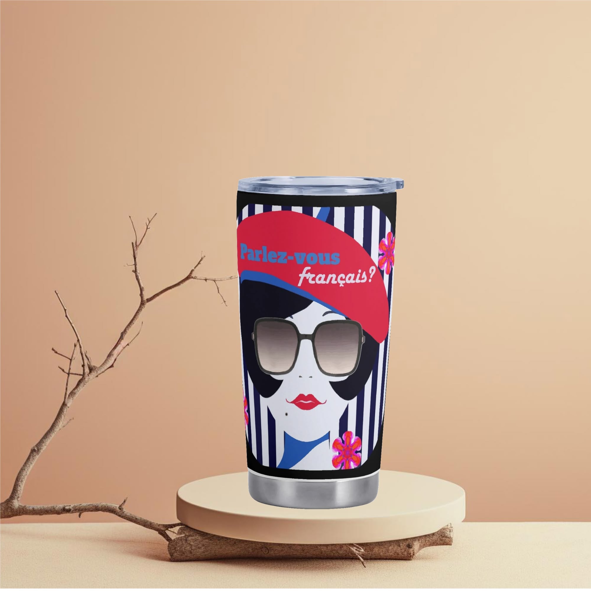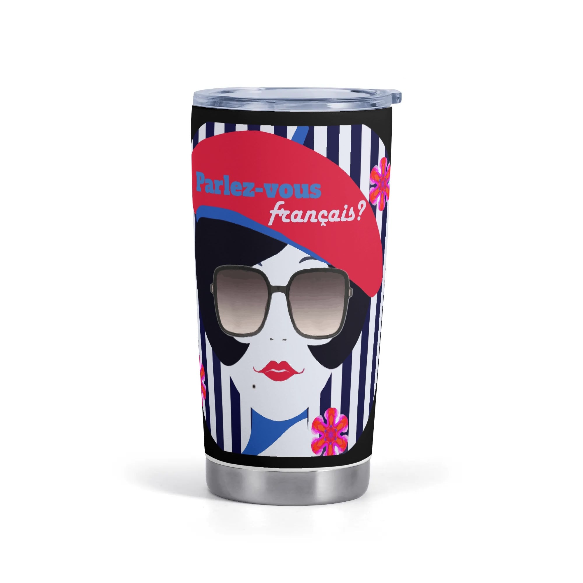 Parlez-vous Francais? French Girl Stainless Steel 20oz Travel Tumbler (Made in USA)