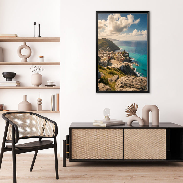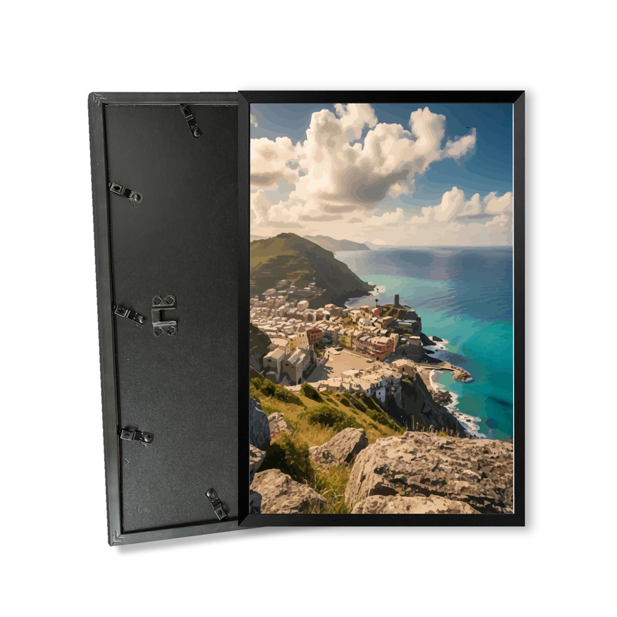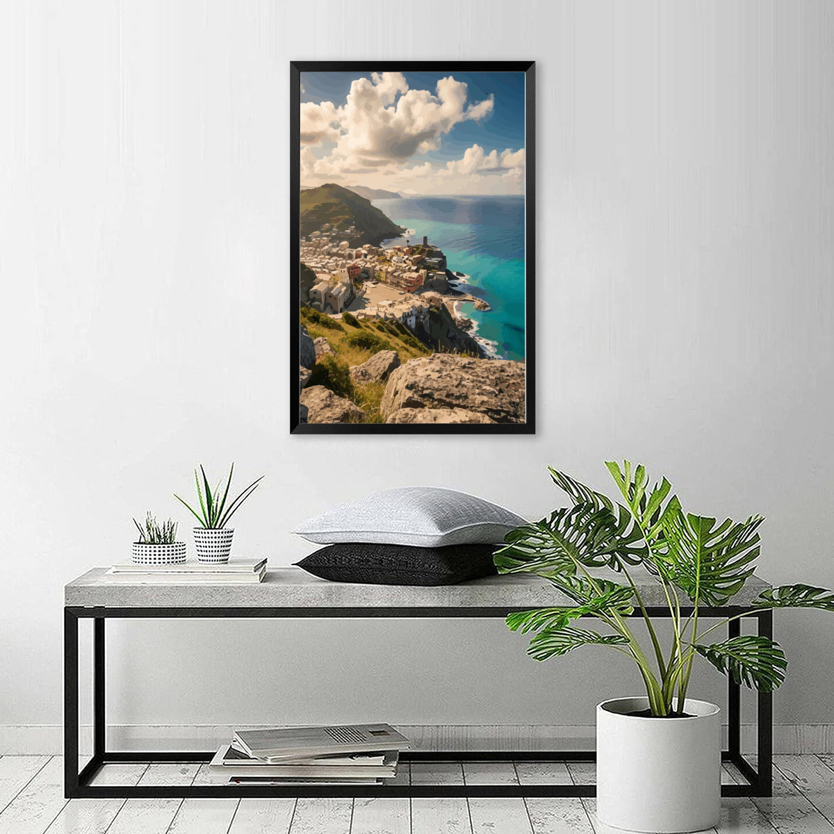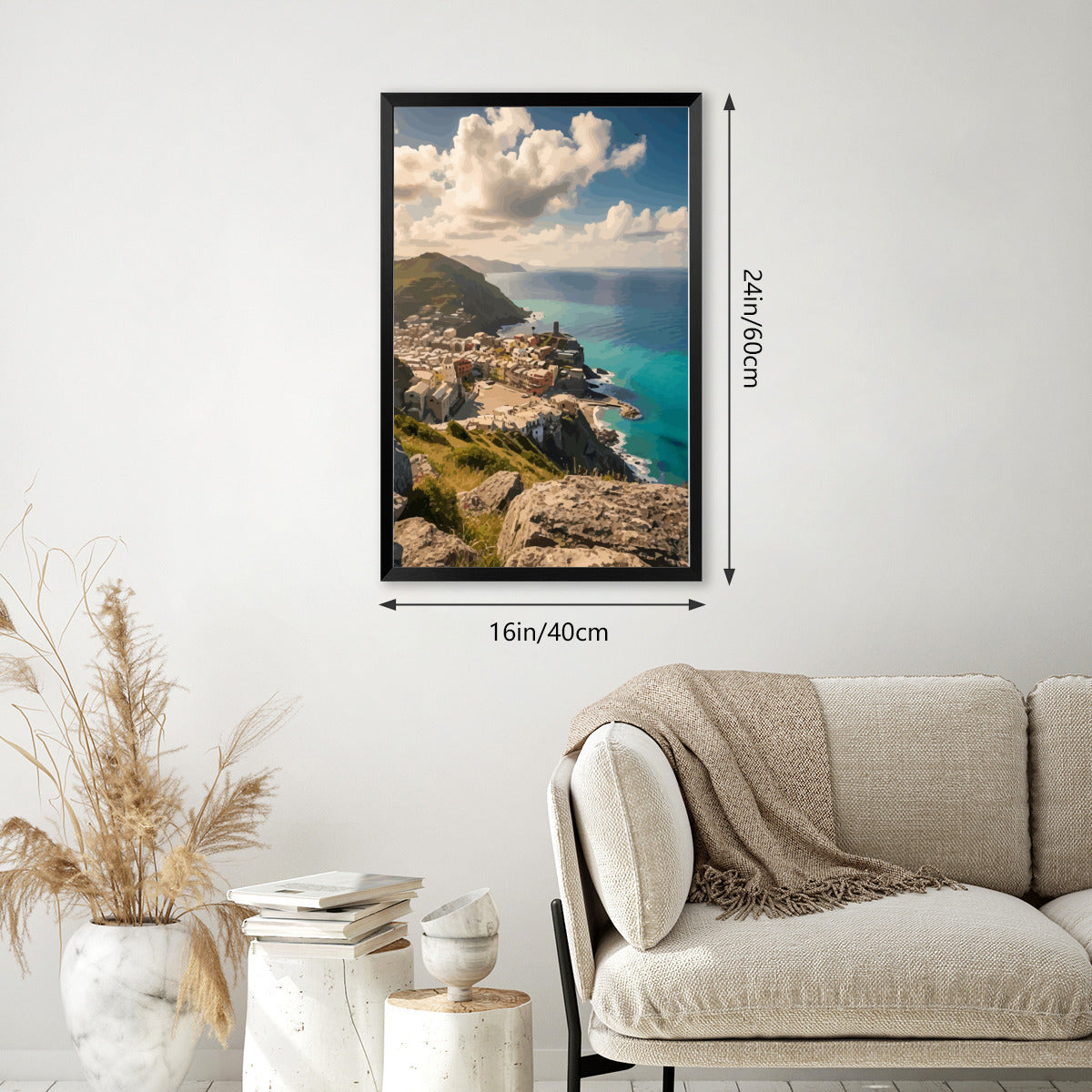 This Quaint Village by the Ocean Frame Print is made from high-quality materials with high-definition printing. It is waterproof, UV-resistant, fade-resistant, and free from any unpleasant odors. It can be hung in any room in your home, featuring a unique artistic design that adds an eye-catching highlight to your home, bedroom, bathroom, or office, making your space a stylish and cozy place.