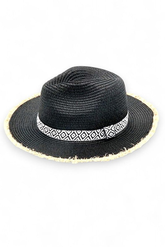 Elevate your style with our Raw Edge Aztec Hatband Straw Fedora! Designed with a unique Aztec pattern hatband, this fedora adds a touch of texture to your ensemble. Plus, its raw edge design gives a modern twist to a classic look. Be effortlessly stylish and confidently stand out.  Free shipping in the USA is available.