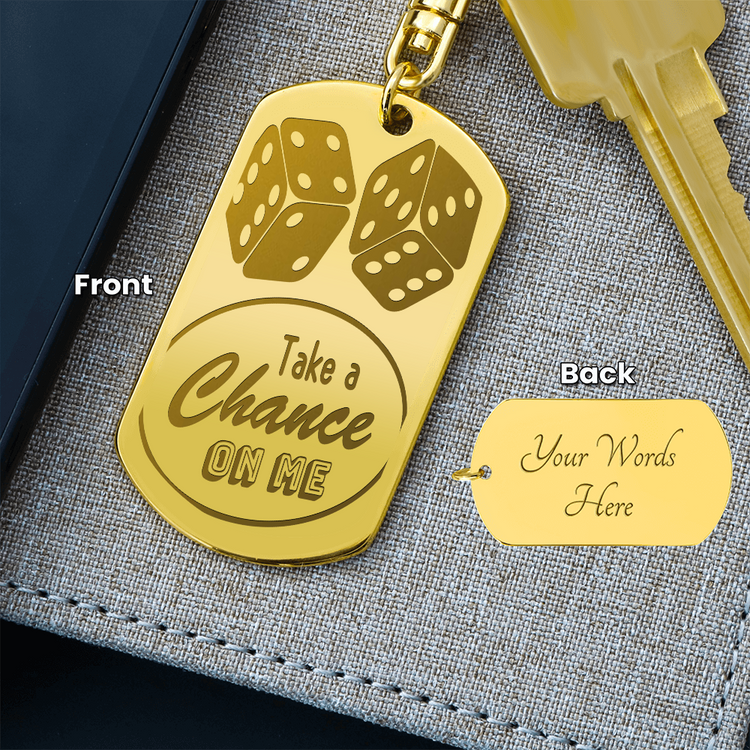 Take a Chance on Me Dice Engraved Dog Tag Keychain