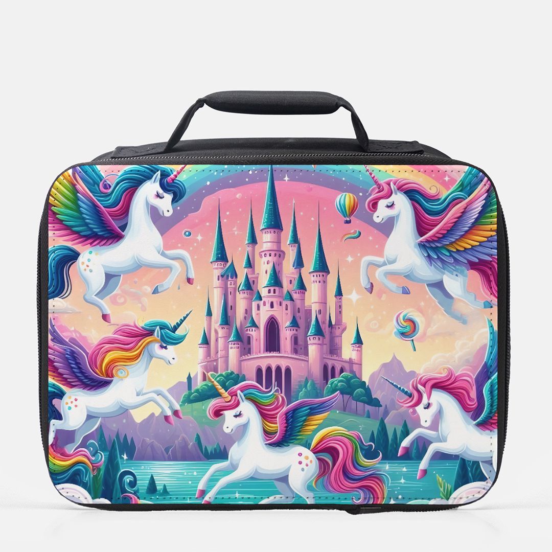 Bring magic to lunchtime with the Unicorn Fantasy Castle Insulated Lunch Box. Designed to keep meals fresh and cool, this charming lunch box features a whimsical castle and unicorn design that sparks imagination. Its insulated interior ensures your food stays at the perfect temperature, making it ideal for school, work, or outings. Lightweight and easy to carry, it combines practicality with enchanting style to brighten every meal break.