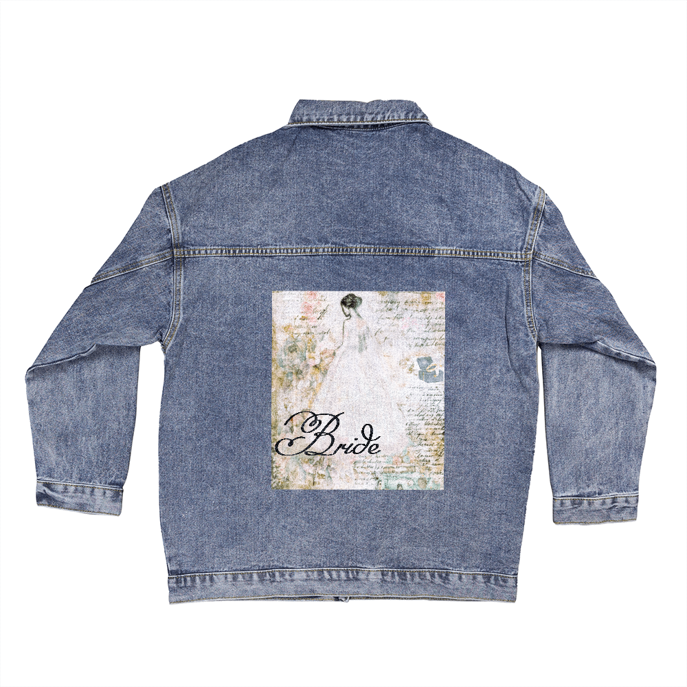 Transform into a vintage bride with our Oversized Women's DTG Denim Jacket! Perfect for any special occasion, this jacket features a unique collage print and is made with high quality denim. Be bold, stylish, and comfortable in this one-of-a-kind piece. Add it to your wardrobe today!