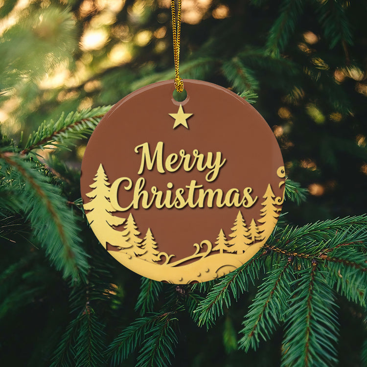 Golden Merry Christmas Ceramic Ornament with Gold String