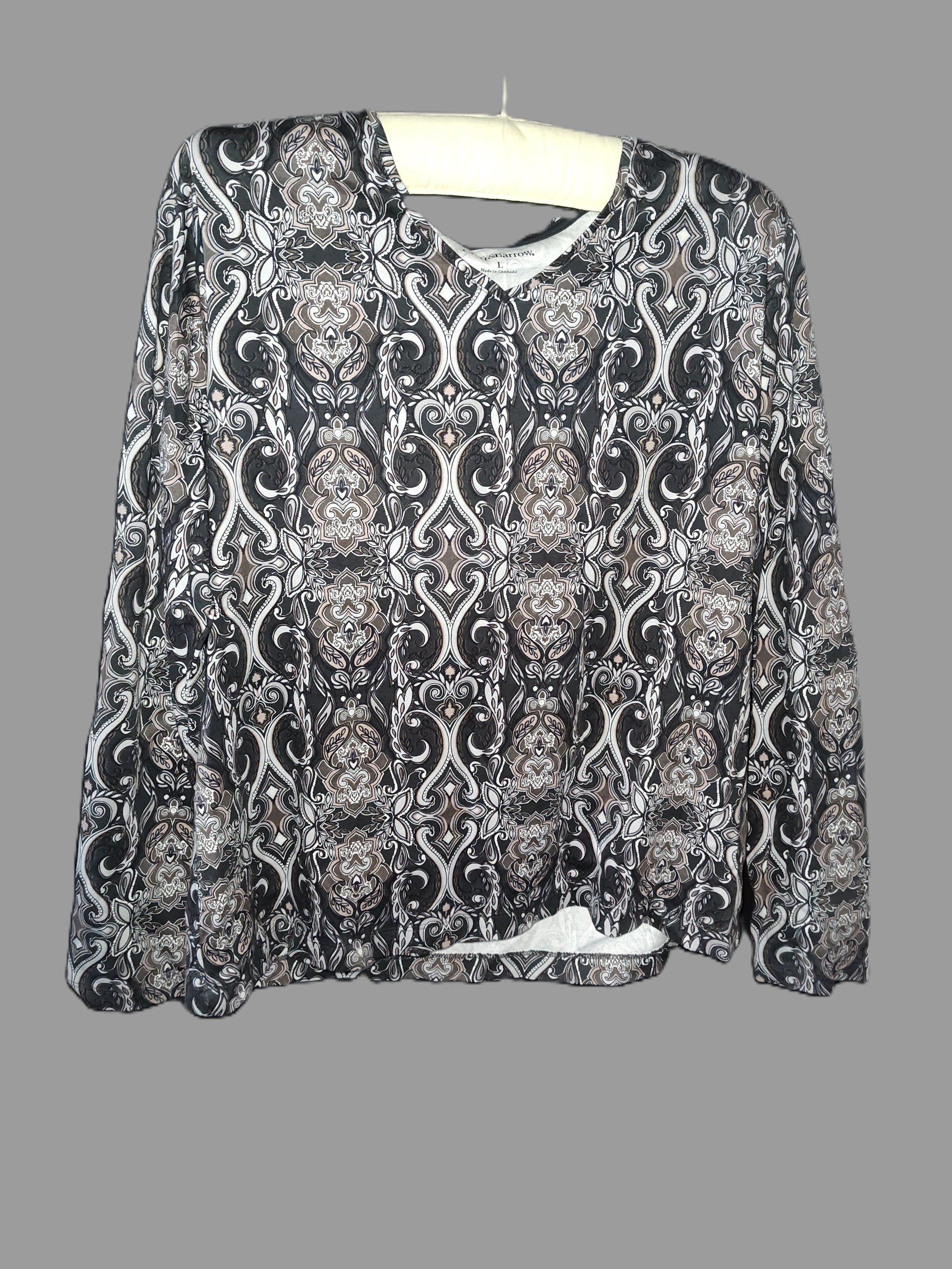 Croft & Barrow Long Sleeve Geometric Print Top - Size L