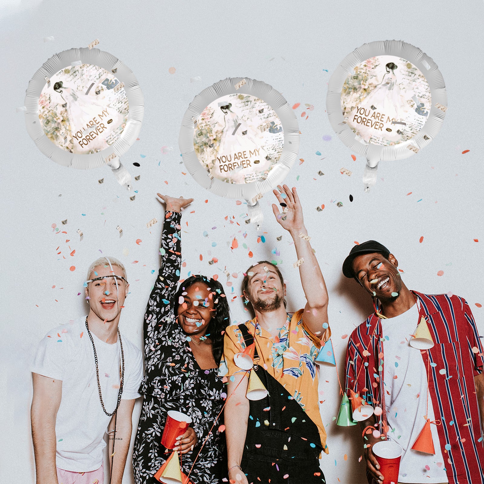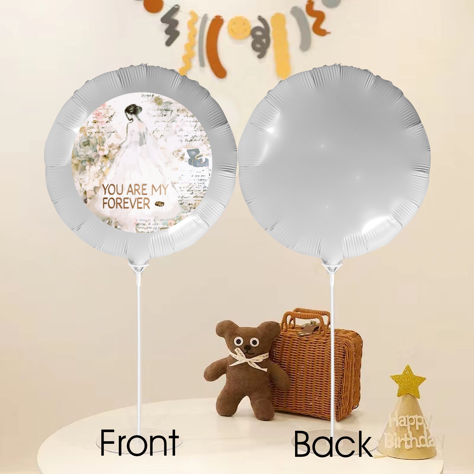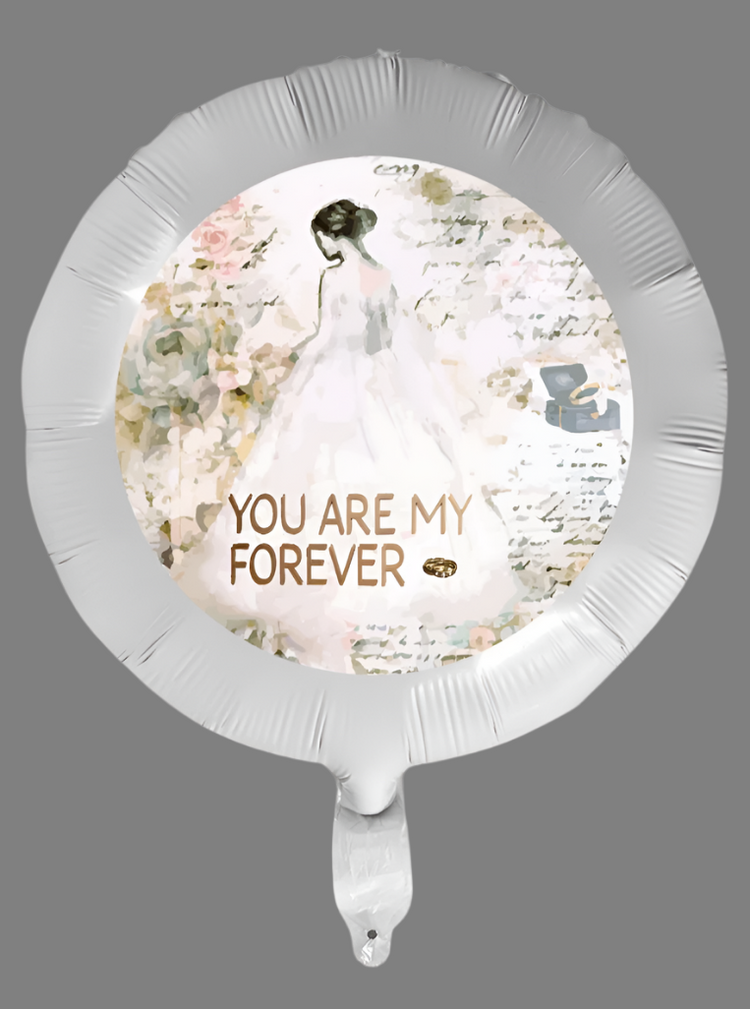 Elevate your wedding celebration with our exclusive "You Are My Forever" 18-inch aluminum foil balloons. This premium pack of 3 American-made balloons adds a touch of elegance to your special day. Their durable construction ensures they'll float beautifully throughout your ceremony and reception, creating picture-perfect backdrops for those once-in-a-lifetime moments. Don't settle for ordinary decorations when you can make a statement that lasts as long as your vows.  Order now to ensure timely delivery for the big day, plus receive free shipping in the USA.